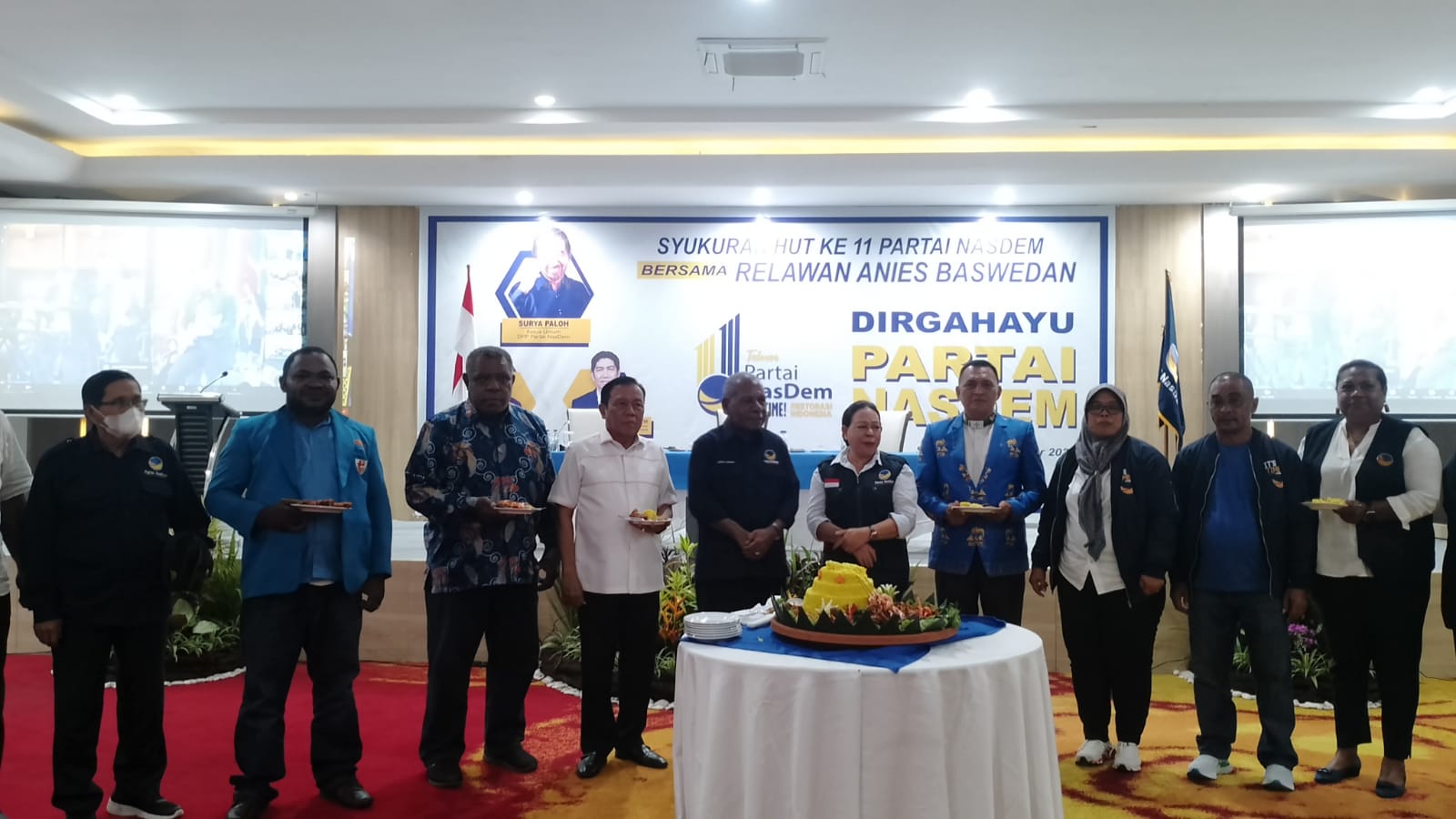 Sementara itu, Ketua DPW Partai Nasdem Provinsi Papua, Mathius Awoitauw, SE. MSi kepada awak media Ia menyampaikan. “Hari ini adalah hari yang istimewa”, karena tepat di ulang tahun yang ke 11 pada tanggal 11 bulan 11, itu hartinya Nasdem siap menang.