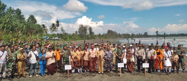 Ini sebagai contoh agar masyarakat siapapun dapat menjaga pantai dengan menanam pohon guna menjaga lingkungan hidup agar tidak rusak dan tercemar” ujar Pasiter Kapten Inf. Gatot Setyo Widodo