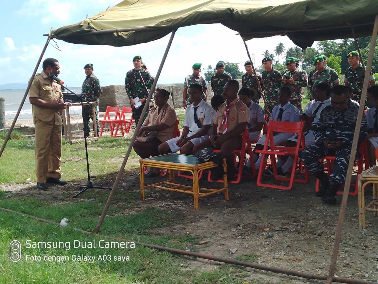 Turut hadir dalam kegiatan tersebut, Lanal Sarmi Mayor Laut Michel Ansanai, Dandramil sarmi mayor inf Darno, Kapolsek Sarmi Kota, Ipda. Darno, toko masyarakat kampung Tafarewar, siswa- siswi   (Nesma/ander)