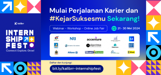 Kalibrr akan gelar acara job fair secara daring pada 21 – 30 Mei 2024, bertajuk Internship Festival. Puluhan lowongan magang dari 15 mitra perusahaan Kalibrr akan tersedia untuk mahasiswa atau fresh graduate di berbagai kota di Indonesia.
