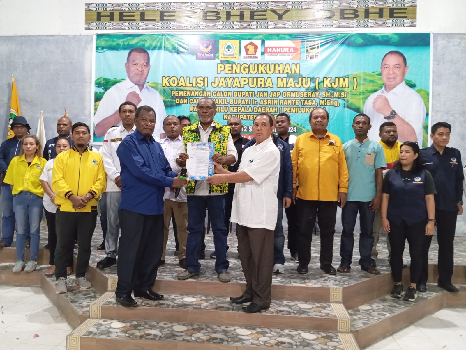 Ketua Tim Koalisi Jayapura, Yanto Eluay menegaskan bahwa, partai pengusung, Koalisi Jayapura Maju, berkomitmen dan siap bekerja untuk kemenangan Jan Jap Ormuseray dan Asrin Rante Tasak sebagai Bupati dan Wakil Bupati Kabupaten Jayapura.