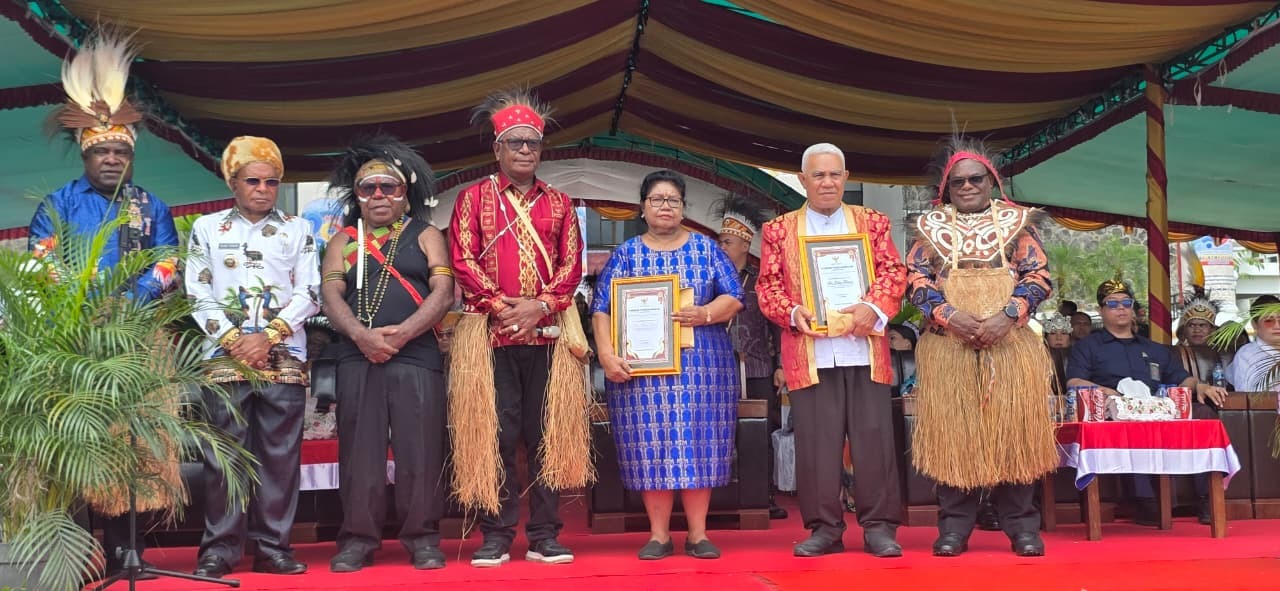 Bupati melalui Gubernur telah menyerahkan penghargaan secara simbolis kepada pegawai pegawai senior sebagai perintis pemerintahan Kabupaten Mimika yang diwakili oleh Drs Taslim Tuheteru dan Ibu Anna Rettob.