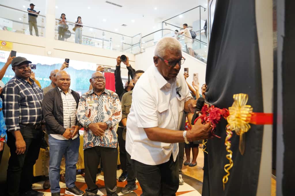 Bupati Mimika Johannes Rettob ketika menggunting pita selubung Mimika Photo Eksibition 2025.