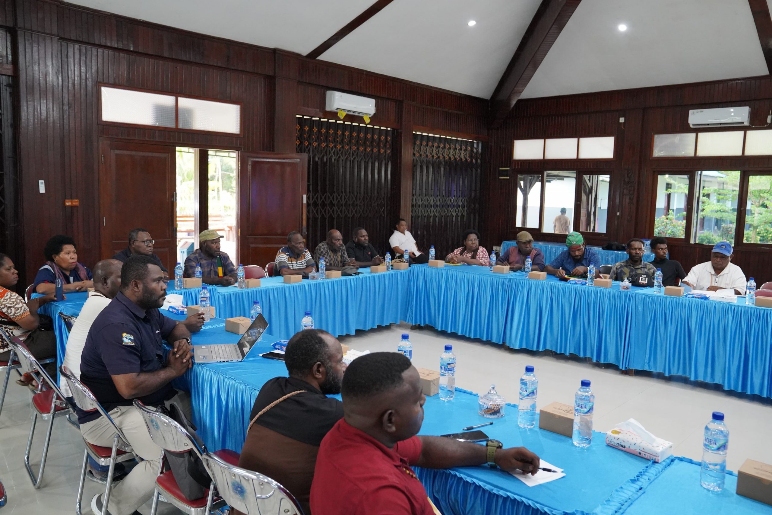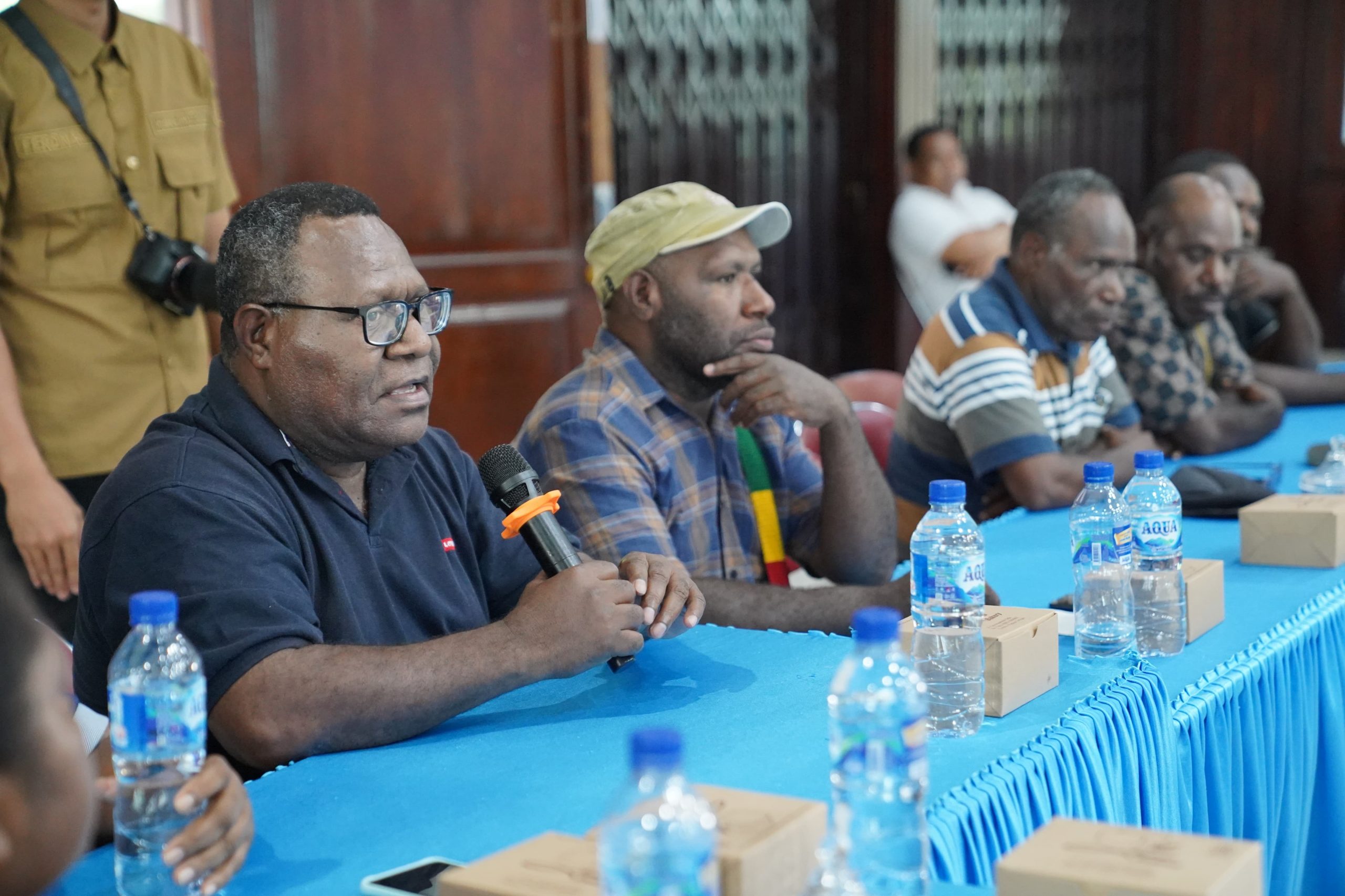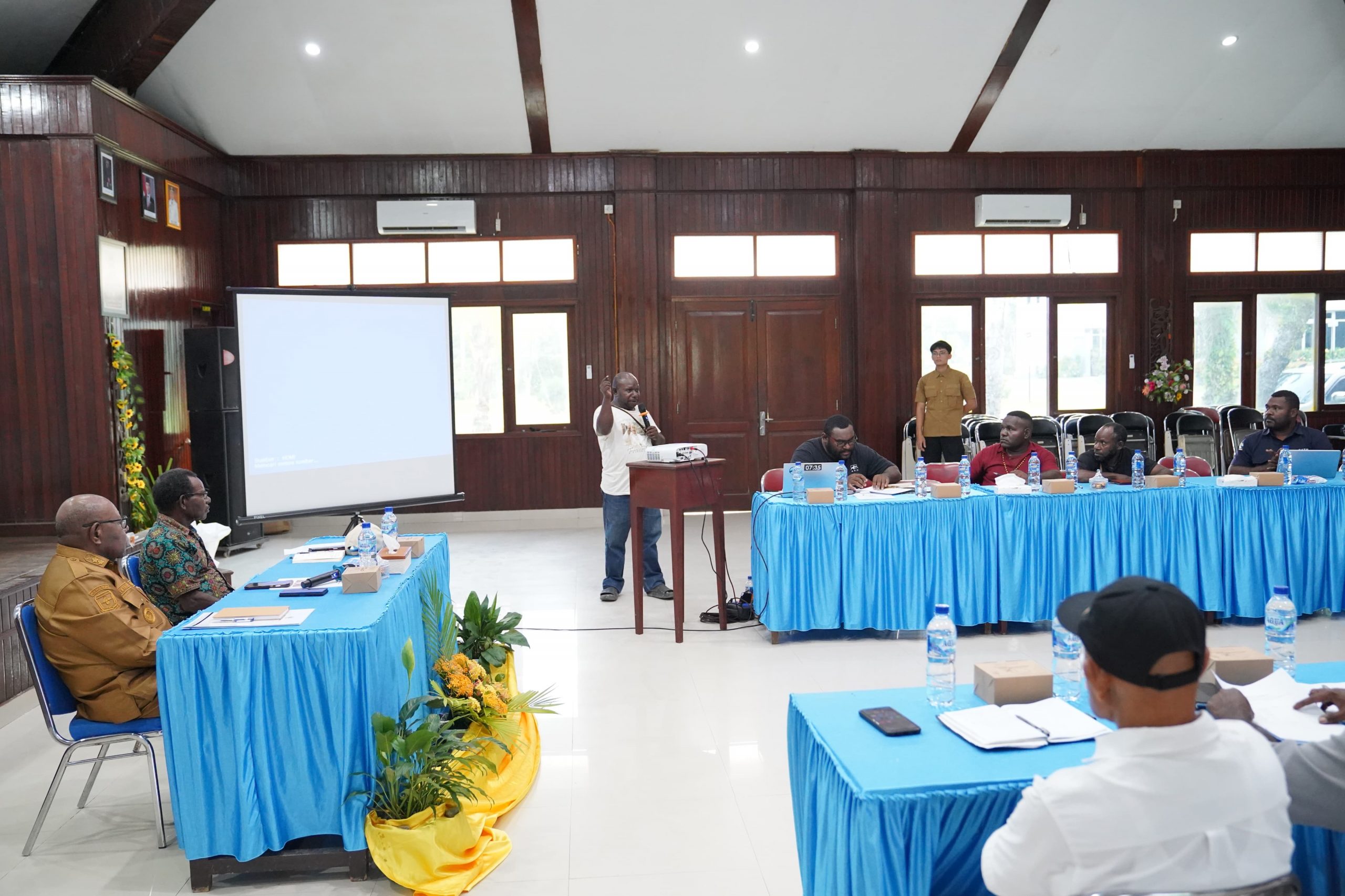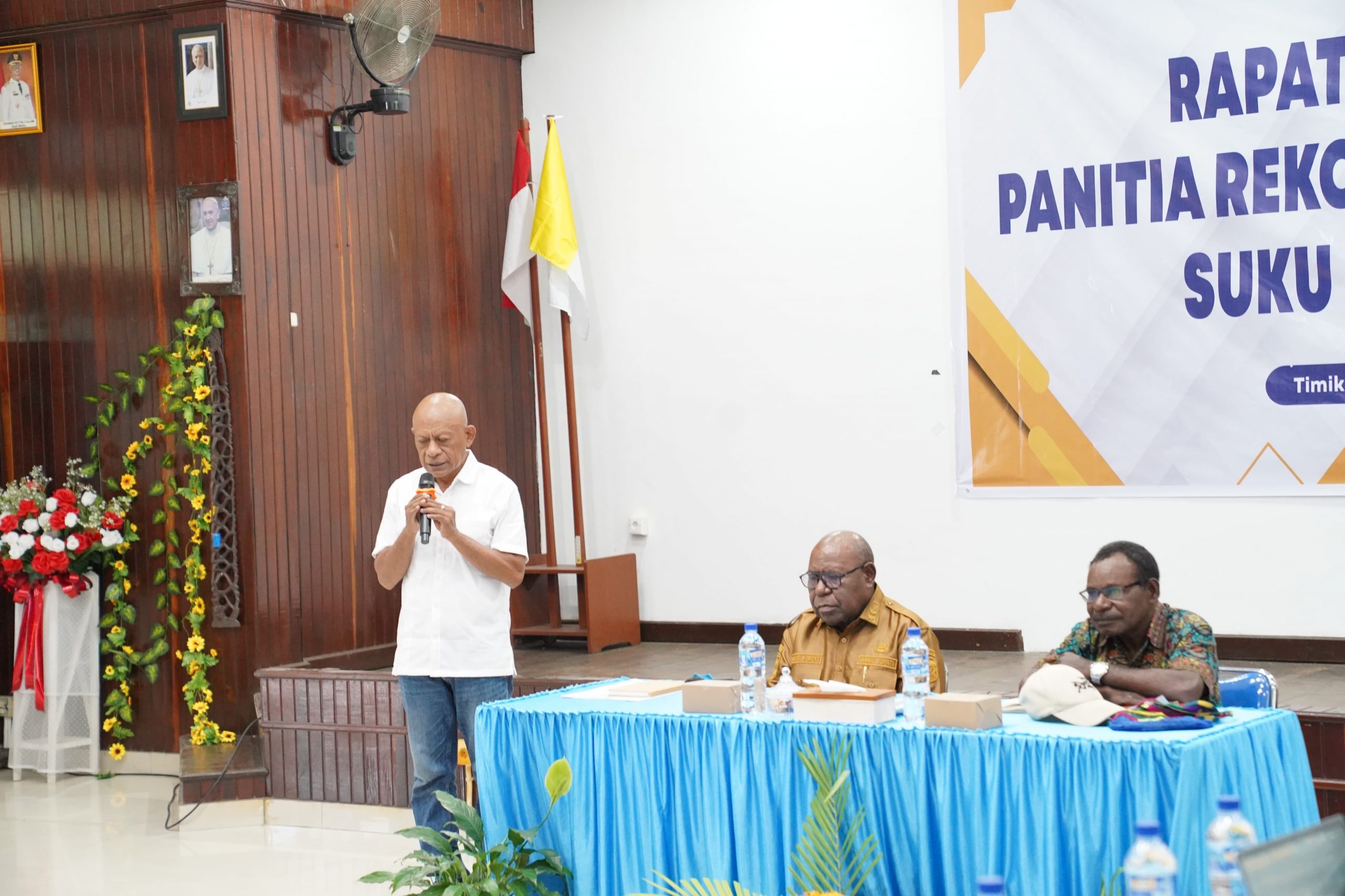 Wakil Bupati Mimika, Emanuel Kemong sebagai anak adat Suku Amungme memimpin rapat panitia rekonsiliasi didampingi Wakil Ketua Panitia, Albert Tsolme.