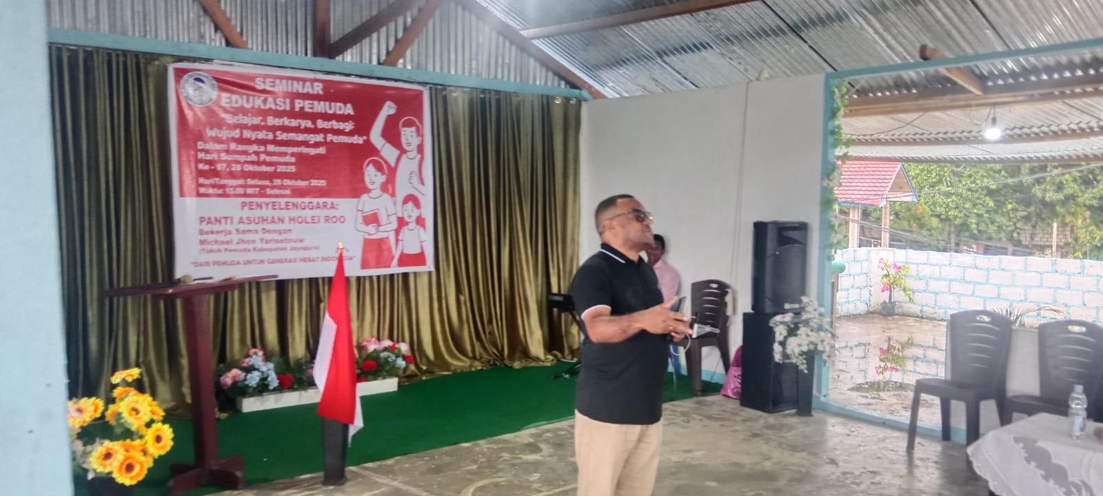 Motivasi itu di sampaikan oleh Tokoh Pemuda Michael Yarisetouw pada seminar Edukasi Pemuda yang di gelar pengurus Panti asuhan Holei Roo Sentani pada selasa, (28/10/2025).