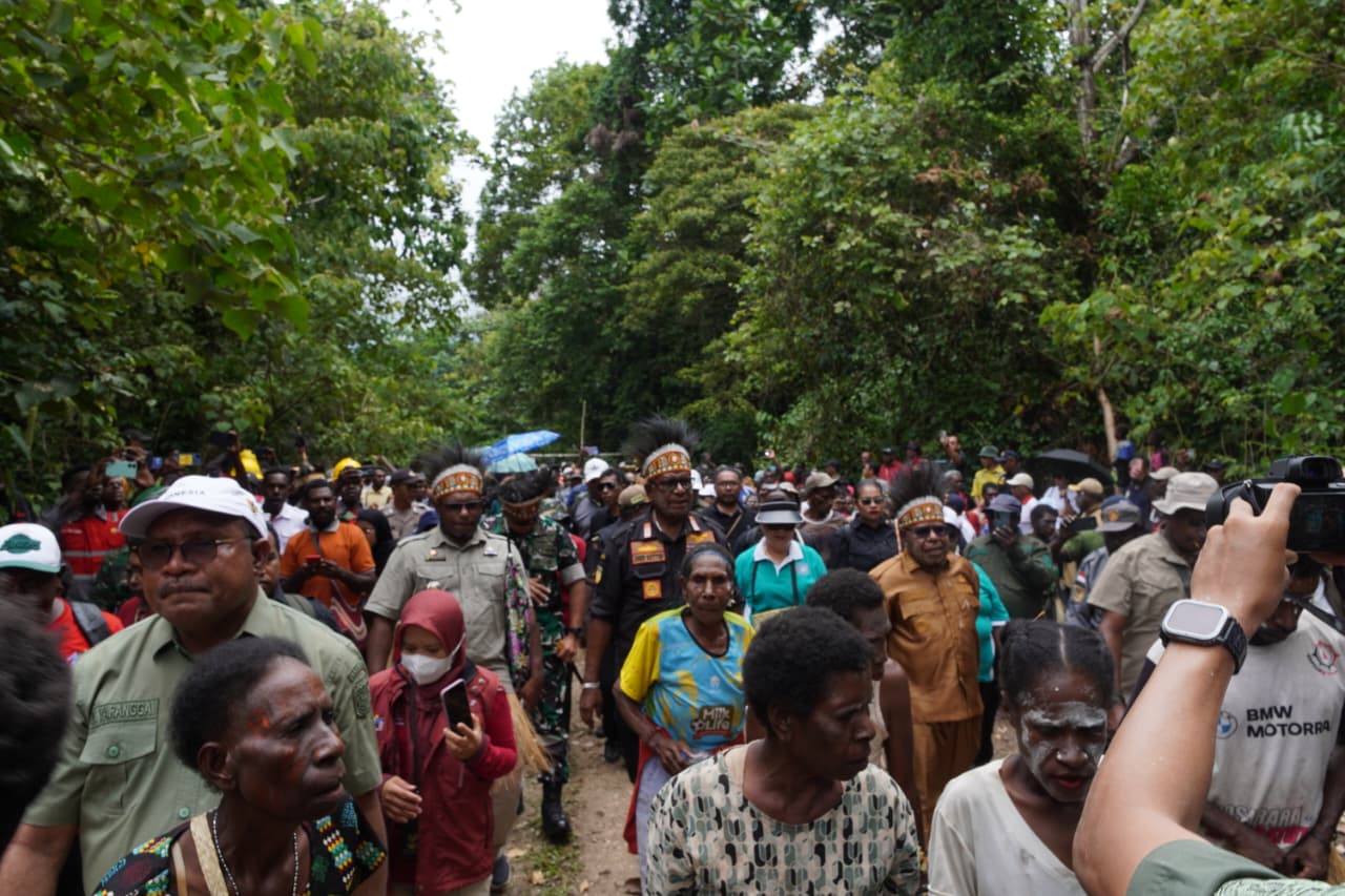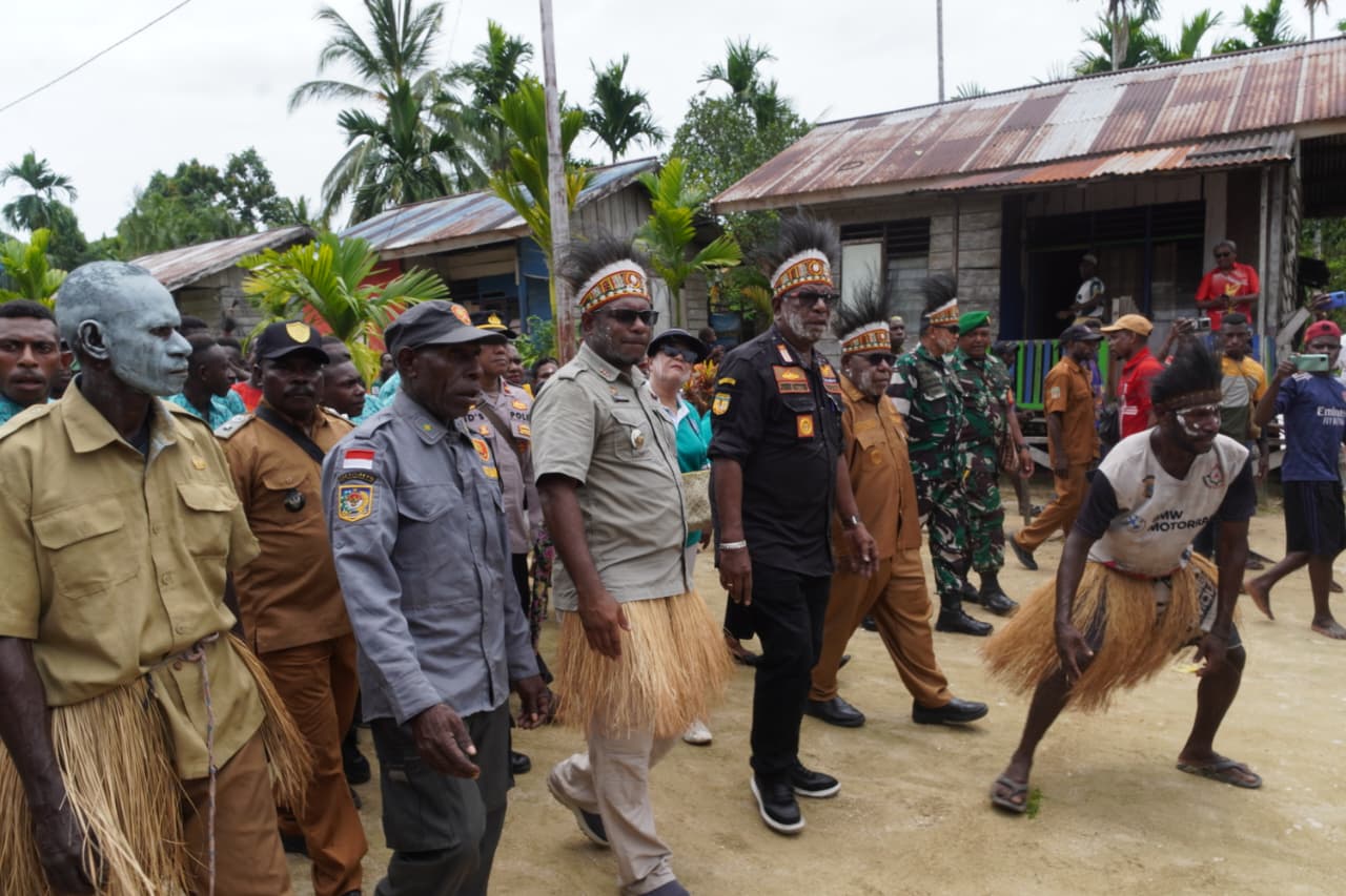 Masyarakat dari Kampung Potowaiburu, Kampung Yapakopa, Ararau, Potowai, Tapormai, dan Kampung Aindua menyambut Bupati Mimika dan Wakil Bupati.