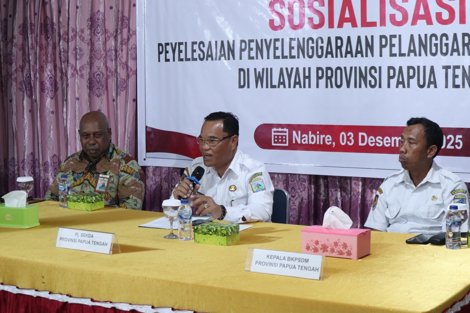 Pesan itu disampaikan Ukkas dalam sambutannya mewakili Gubernur Meki Nawipa saat membuka kegiatan Sosialisasi Penyelesaian Penyelenggaraan Pelanggaran Kode Etik ASN di Wilayah Provinsi Papua Tengah yang digelar Badan Kepegawaian dan Pengembangan Sumber Daya Manusia (BKPSDM) Provinsi Papua Tengah, Rabu, 3 Desember 2025 di Nabire.