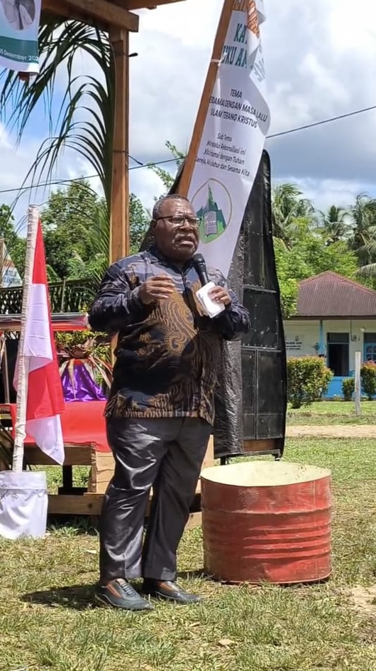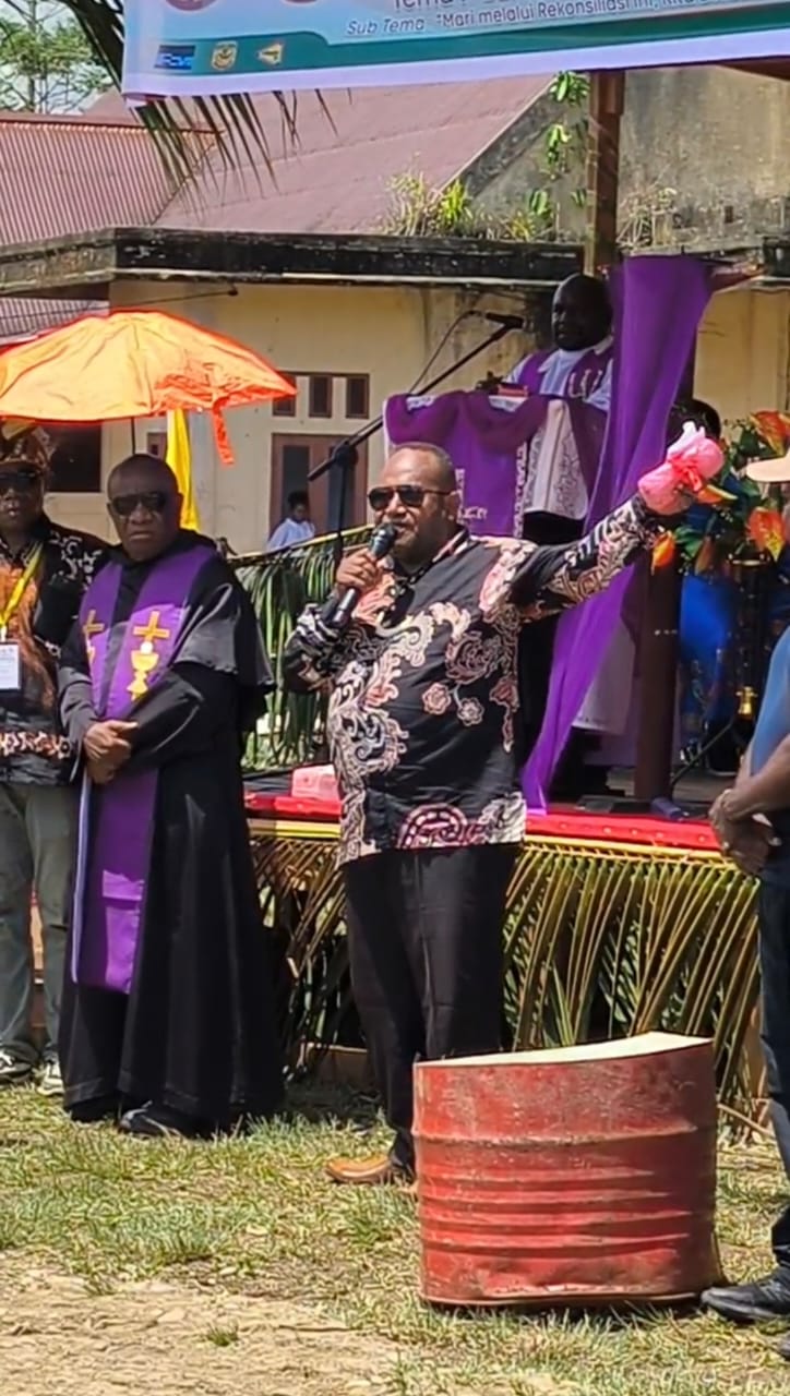 TIMIKA (3/12/25), NGK – Wakil Bupati Mimika, Emanuel Kemong dan istri, Ny. Periana Kemong bersama ribuan umat Katolik asal Suku Amungme di Kabupaten Mimika, Papua Tengah, mengikuti upacara rekonsiliasi Suku Amungme di Distrik Agimuga pada Senin ((1/12/2025).