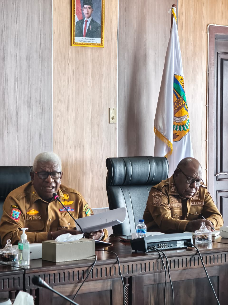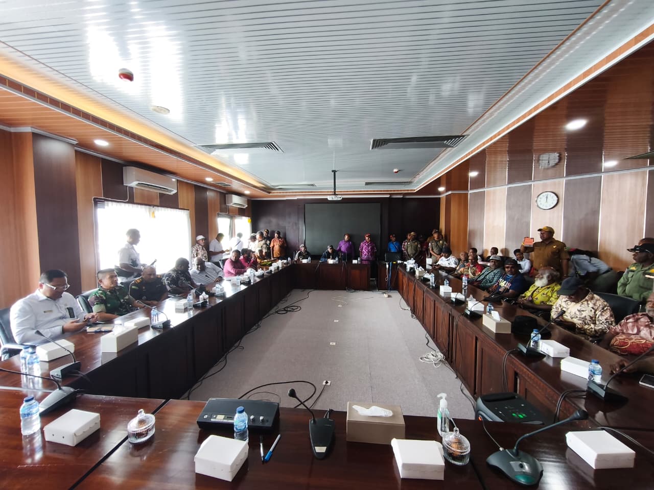 Bupati Mimika, Johannes Rettob dan Wakil Bupati, Emanuel Kemong langsung memimpin forum pertemuan rekonsiliasi antara beberapa Lembaga Adat Suku Amungme dan Pemerintah Kabupaten Mimika yang berlangsung di ruang pertemuan Kantor Pusat Pemerintahan, SP3 Timika.