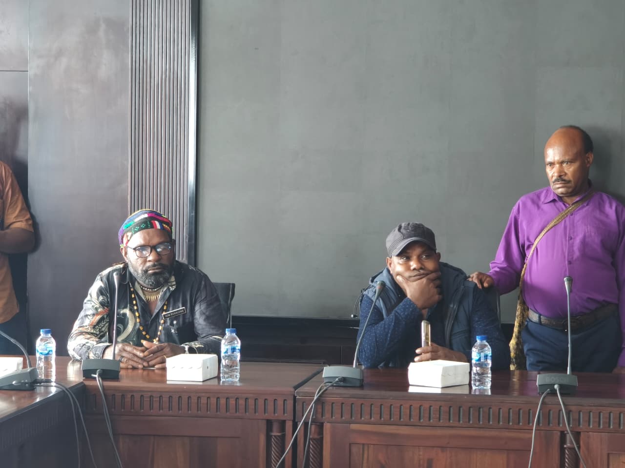 Ketua LEMASA, John Menuel Magal bersama Janes Natkime dan sejumlah tokoh masyarakat Amungme yang menghadiri pertemuan.