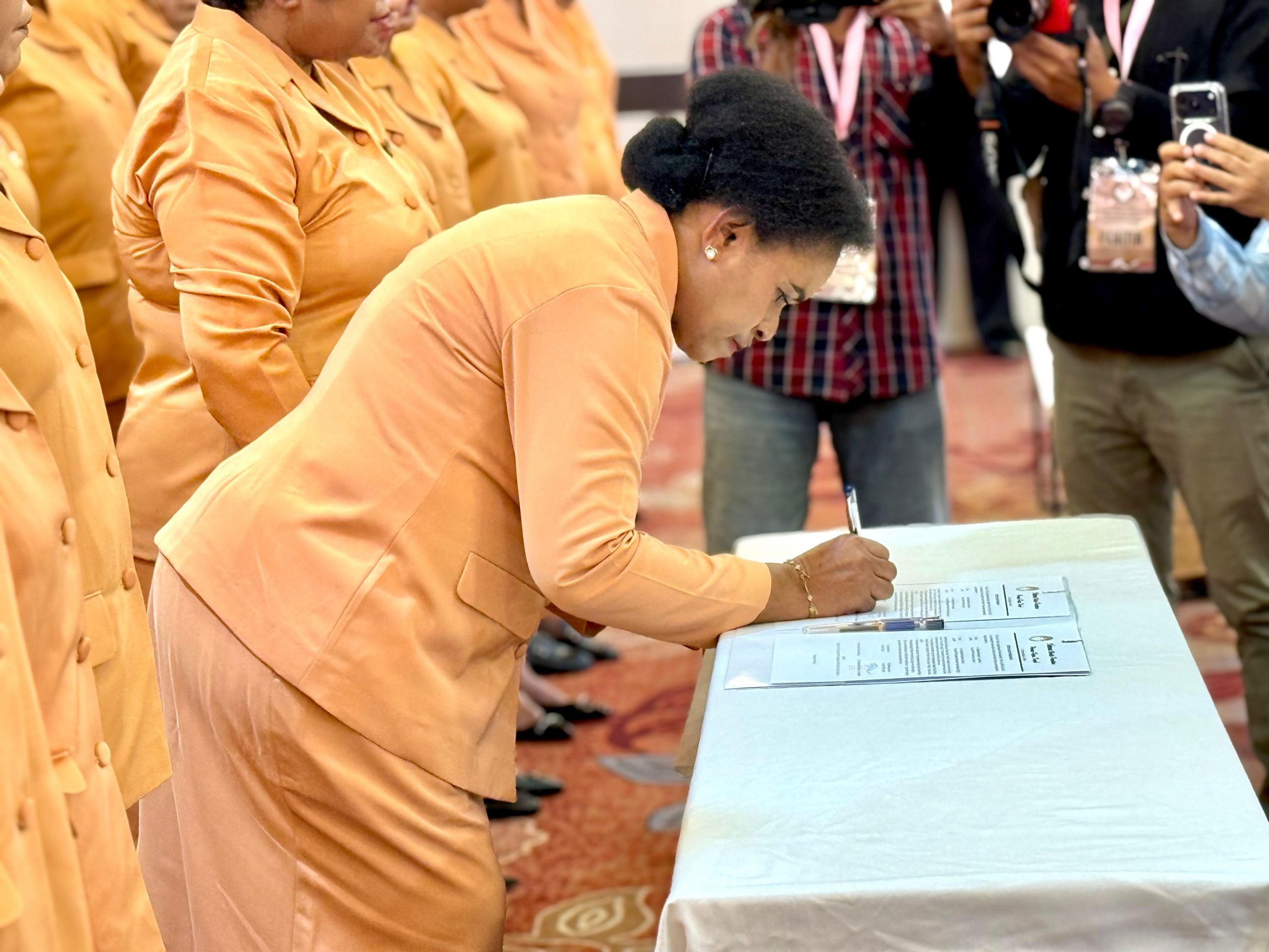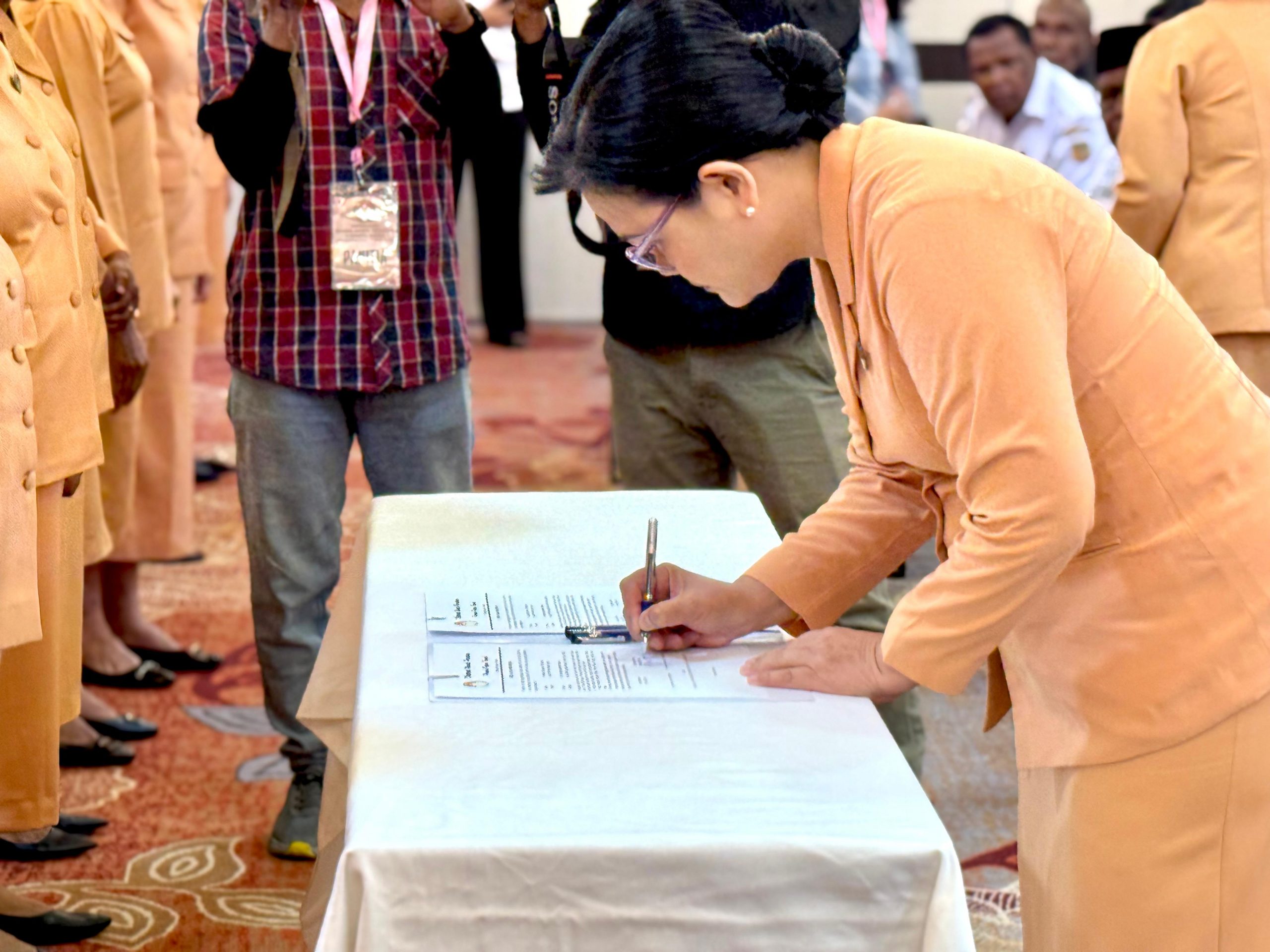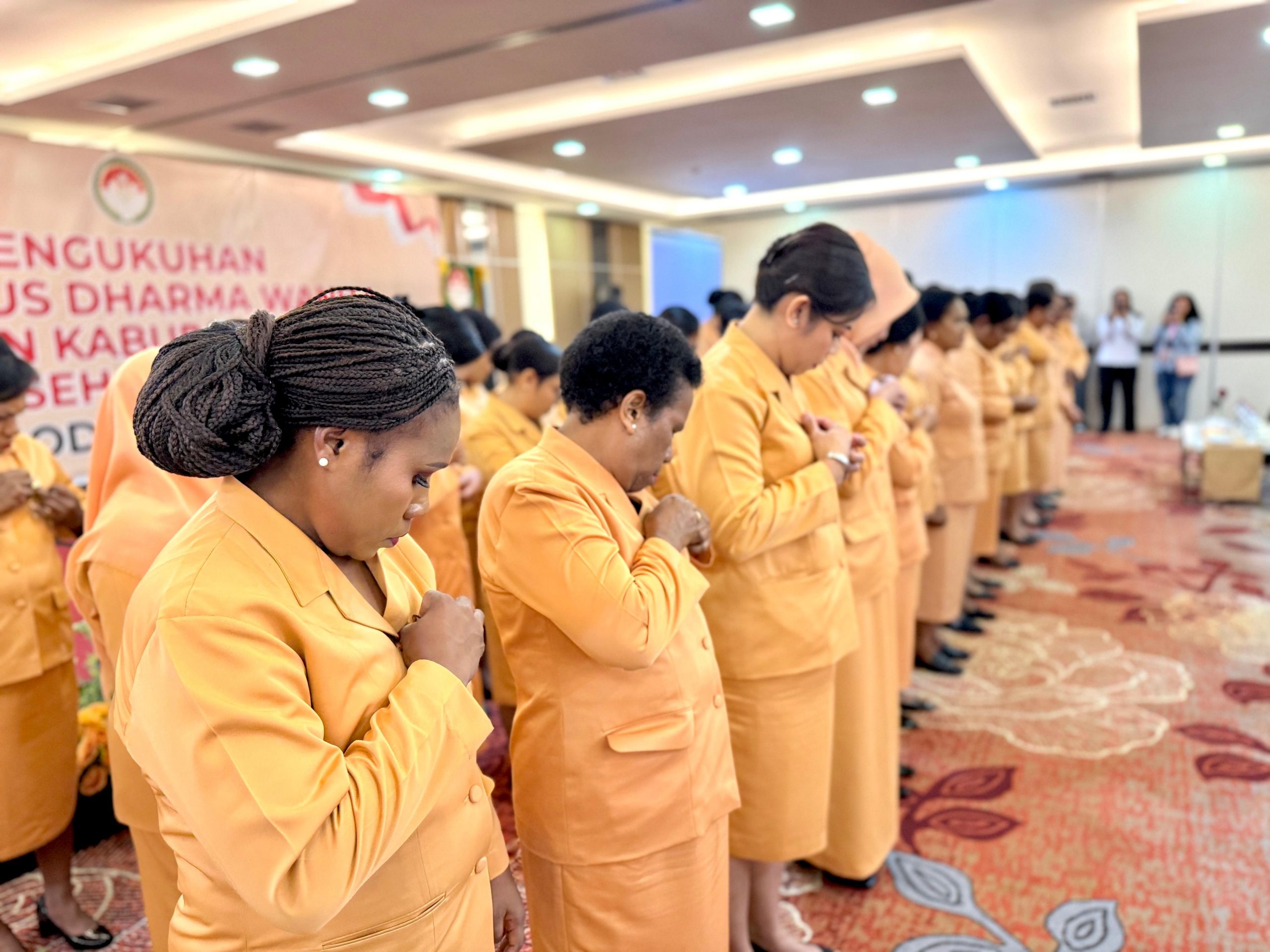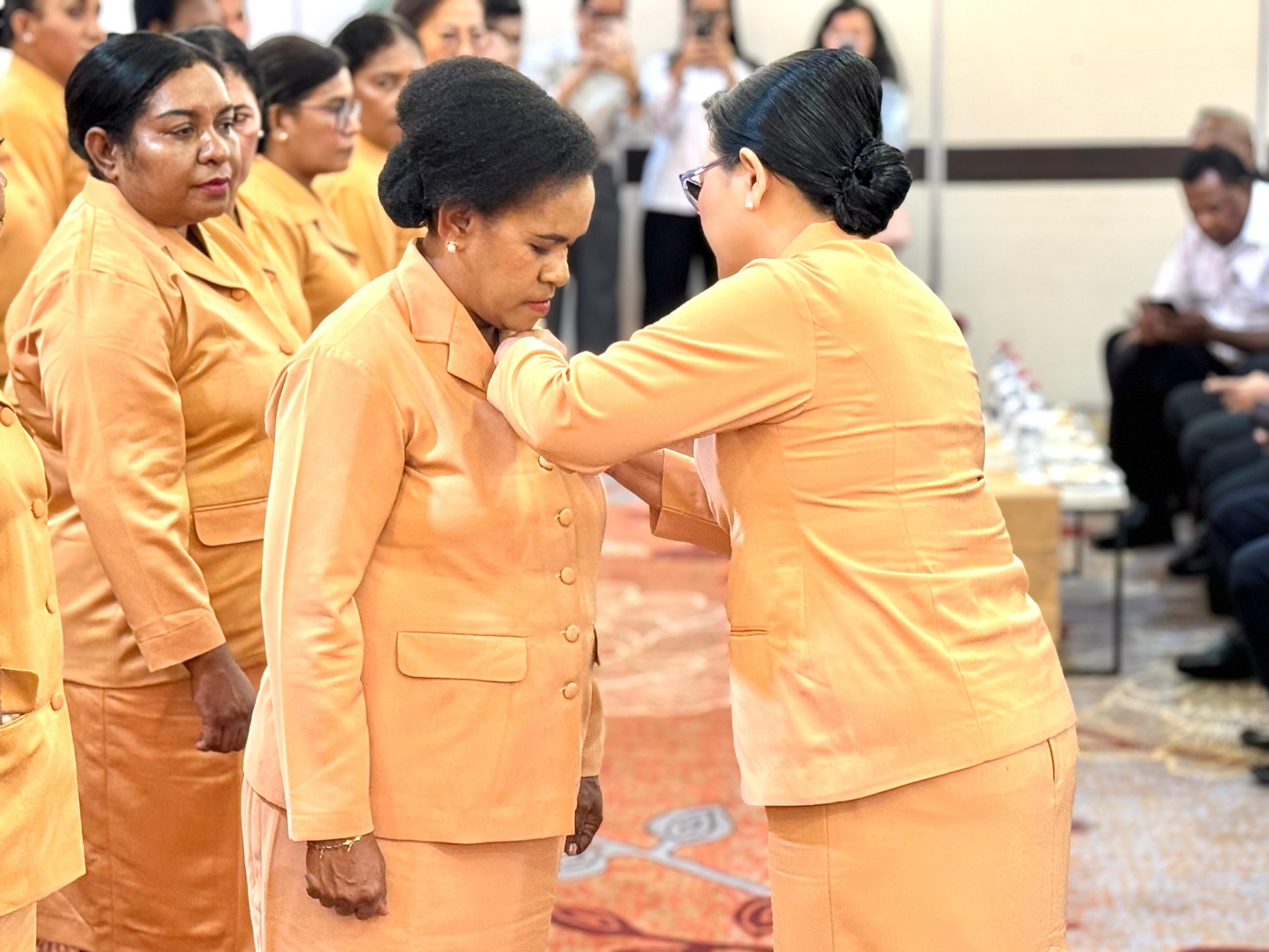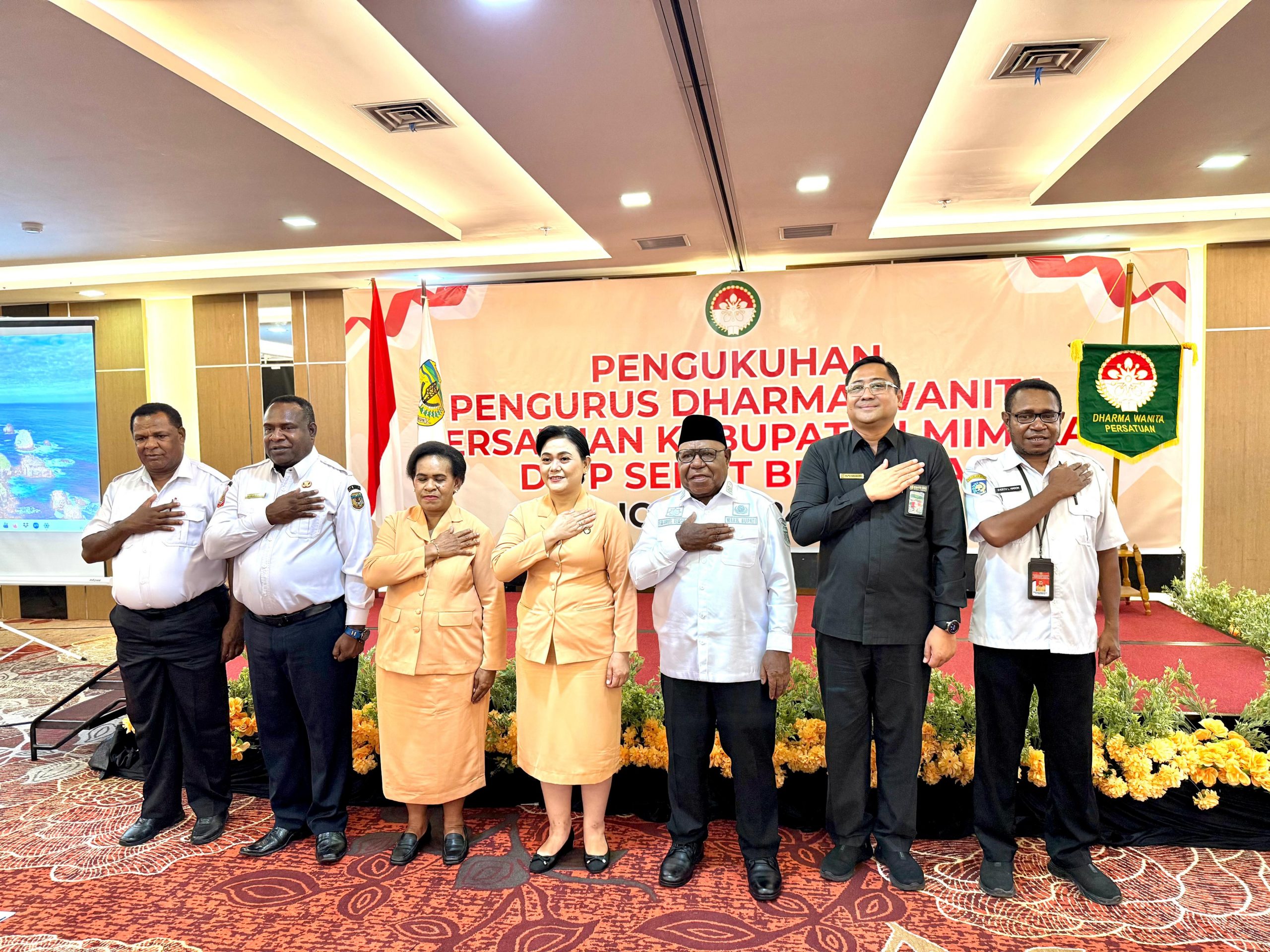 Pengukuhan Pengurus Dharma Wanita Persatuan Kabupaten Mimika masa bakti 2024- 2029 dilakukan oleh Ketua Dharma Wanita Provinsi Papua Tengah, Ibu Meiske Sumule.