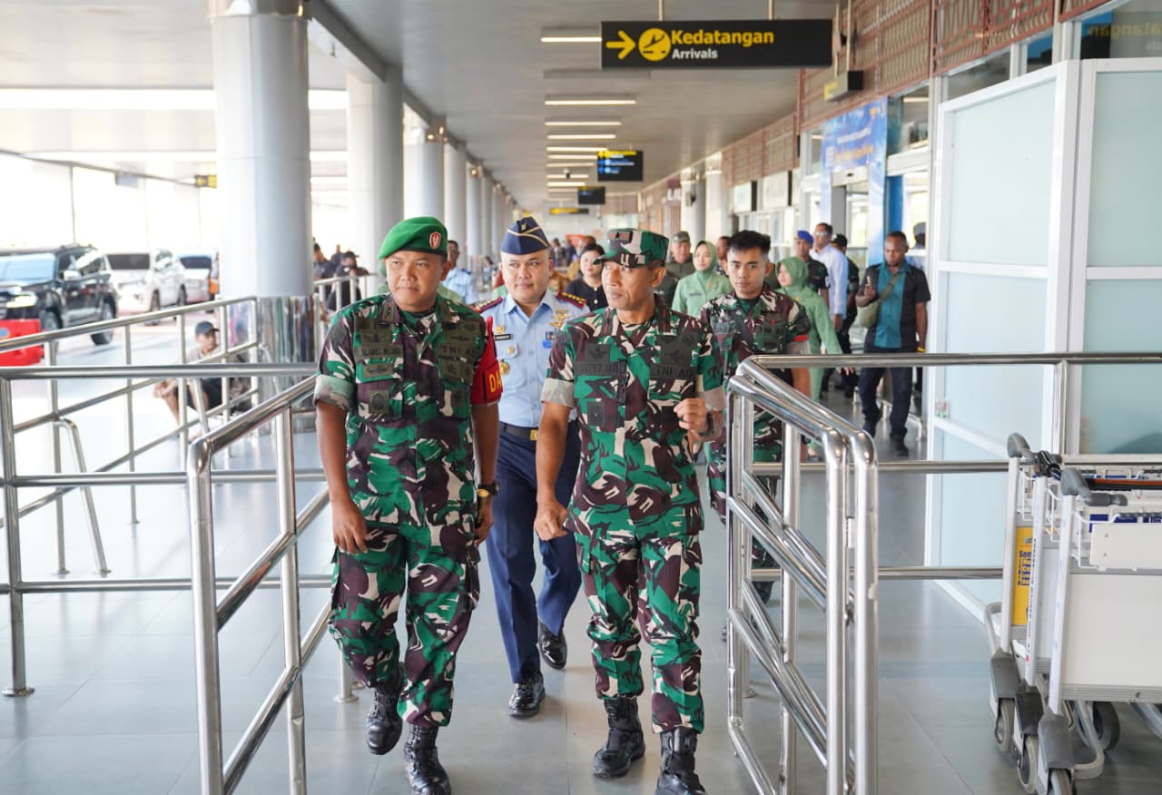 TIMIKA (15/12/25), NGK – Wakil Bupati Mimika, Emanuel Kemong menyambut kedatangan Komandan Resor Militer (Danrem) 173/PVB, Brigjen TNI, I Ketut Mertha Gunarda di Bandara Mozes Kilangin, Timika pada Senin, 15 Desember 2025.