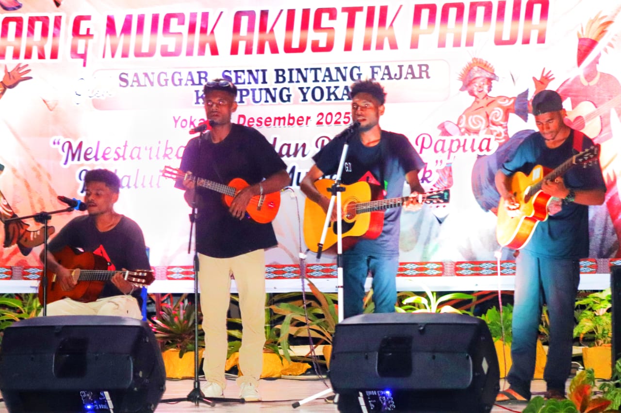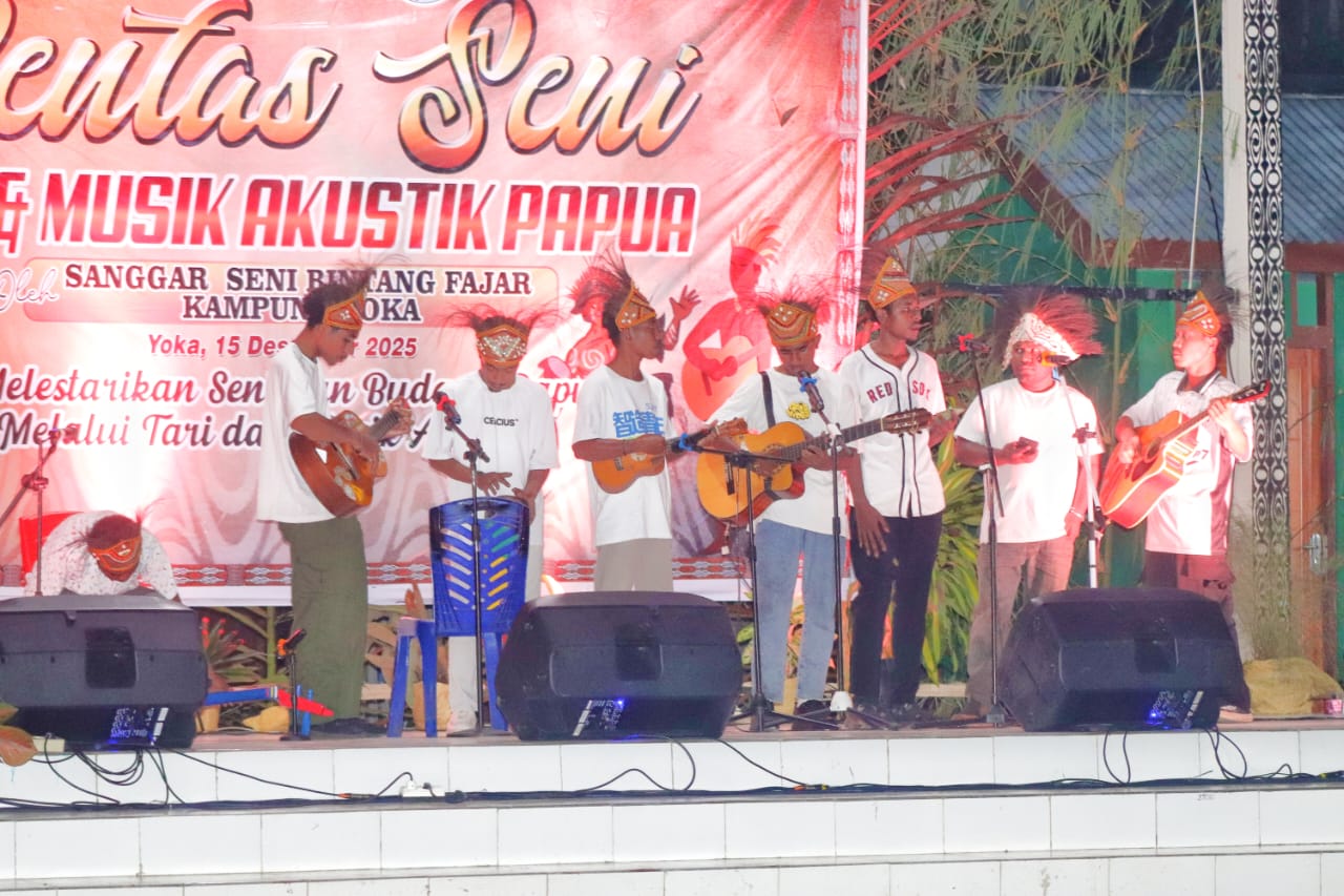 JAYAPURA (16/12/25), NGK – Sanggar Seni Bintang Fajar Kampung Yoka, Distrik Heram, Kota Jayapura, menggelar Pentas Seni Tari dan Musik Akutik Papua sebagai wujud pelestarian budaya sekaligus ruang kolaborasi antar seniman lokal.