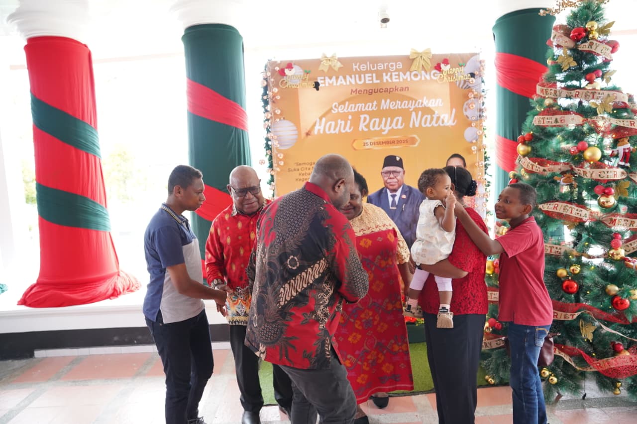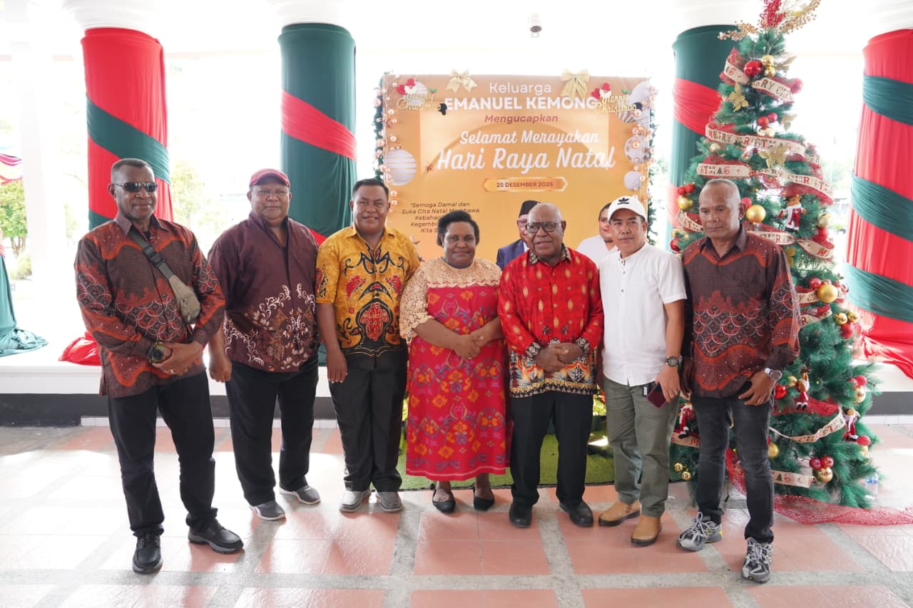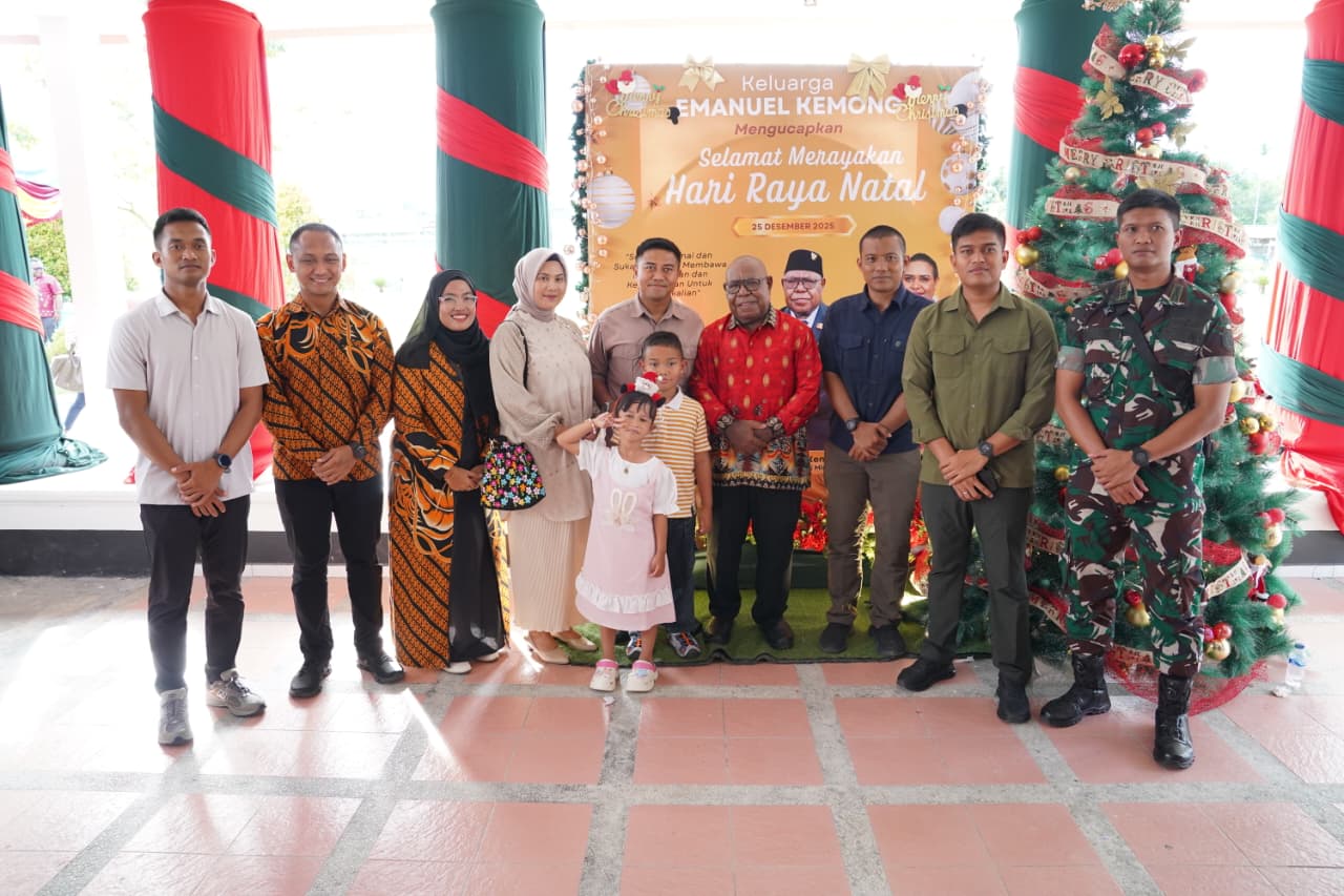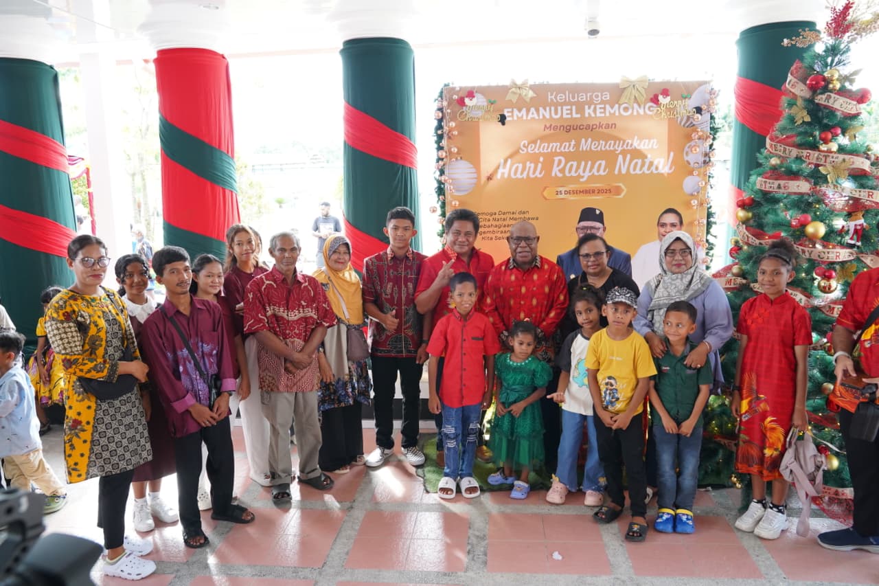 TIMIKA (25/12/25), NGK – Wakil Bupati Mimika, Emanuel Kemong bersama Istri, Mama Periana Kemong dan anak-anak menggelar Open House di rumah jabatan Wakil Bupati Mimika, Kamis, 25 Desember 2026.