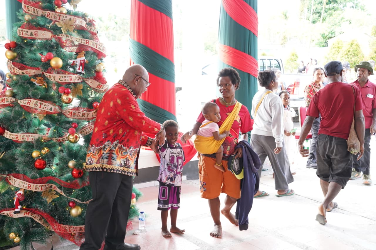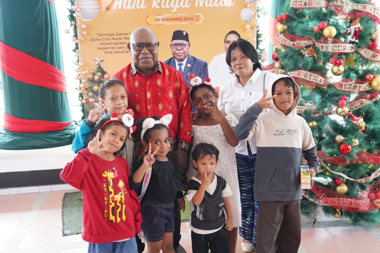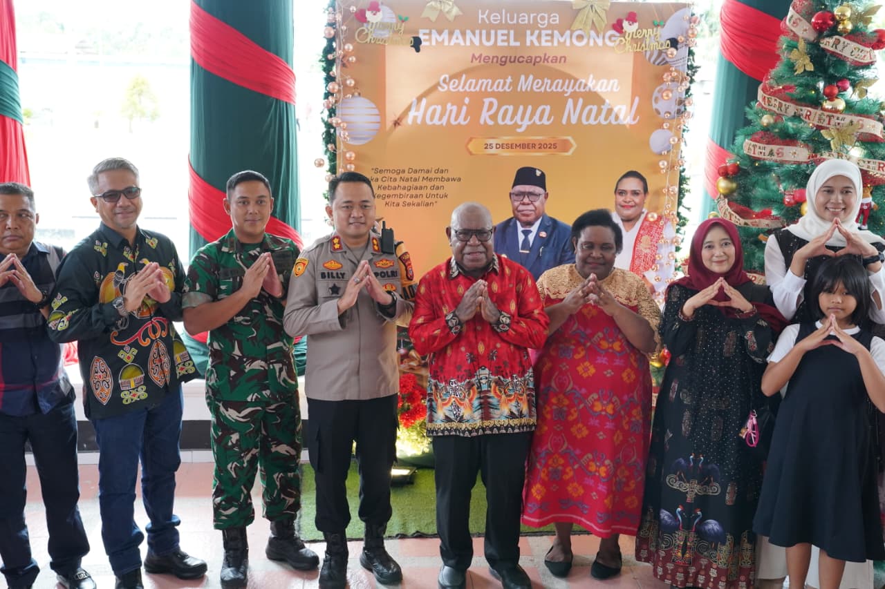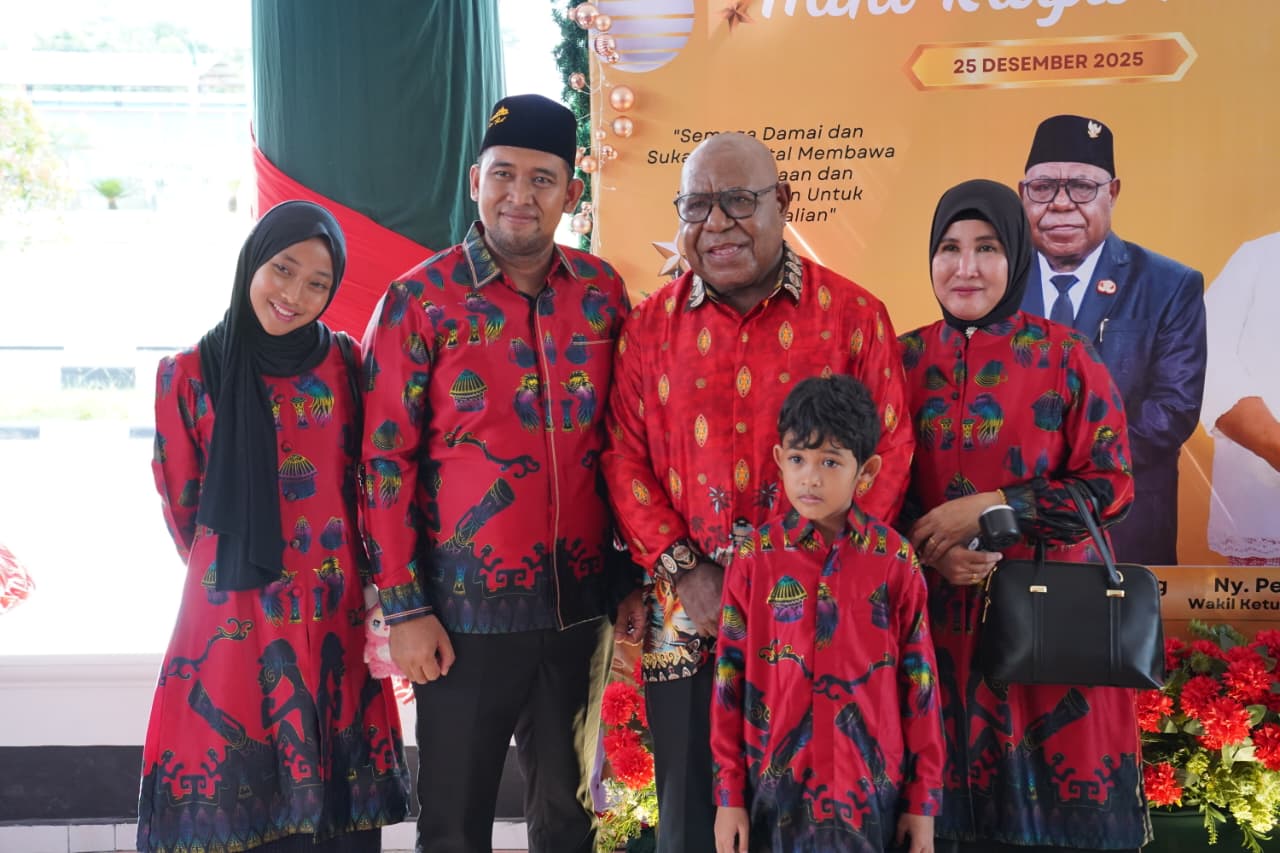 TIMIKA (25/12/25), NGK – Wakil Bupati Mimika, Emanuel Kemong bersama Istri, Mama Periana Kemong dan anak-anak menggelar Open House di rumah jabatan Wakil Bupati Mimika, Kamis, 25 Desember 2026.