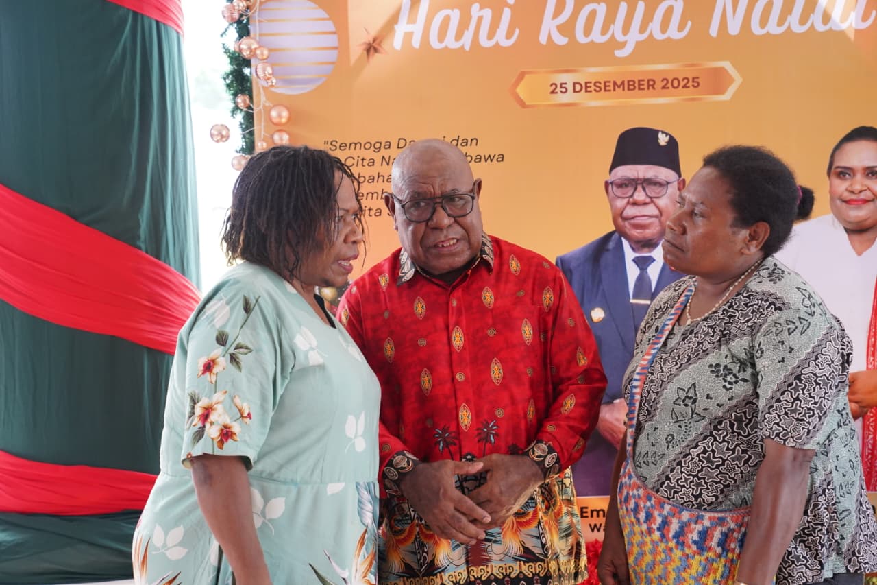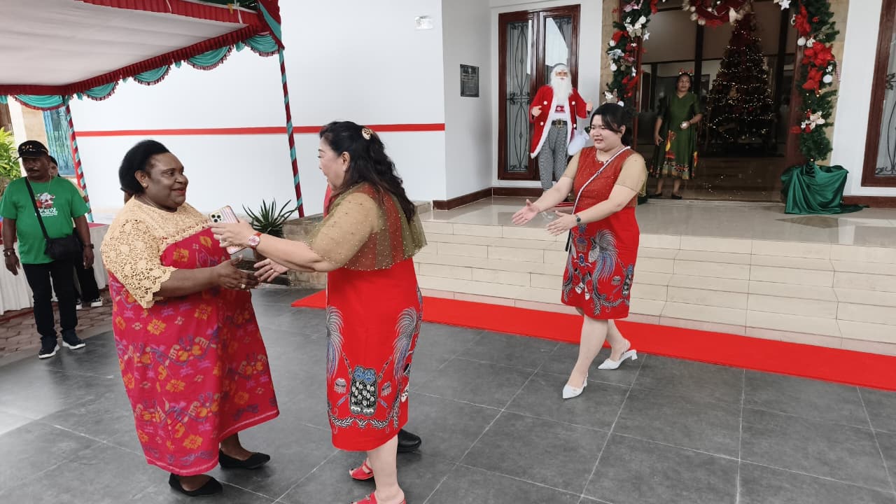 Sebelumnya Wakil Bupati dan istri- Mama Periana Kemong mendatangi Pendopo Rumah Negara untuk memberikan ucapan selamat Natal kepada Bupati Mimika, Johannes Rettob dan istri, Ibu Susi Rettob.
