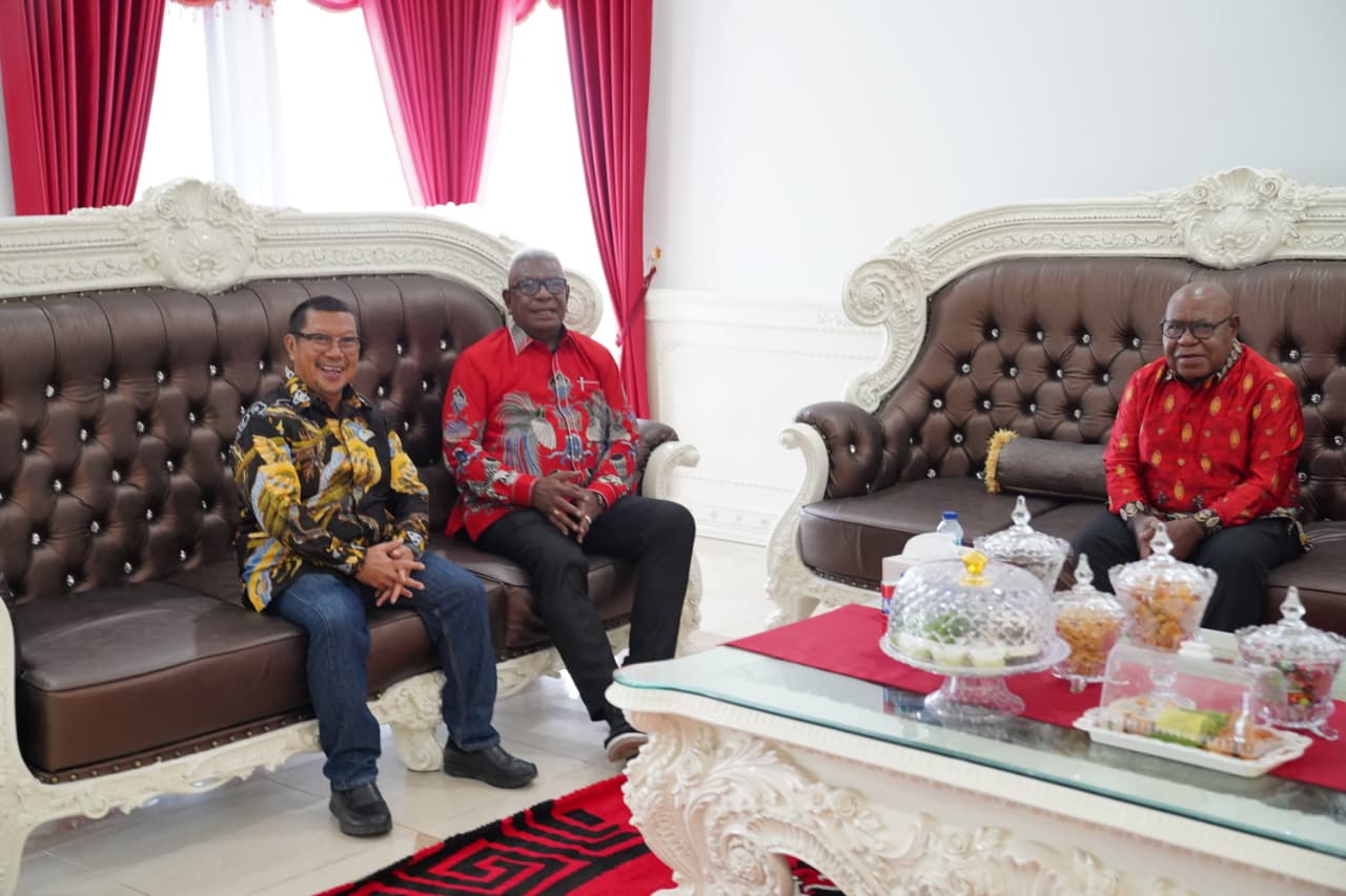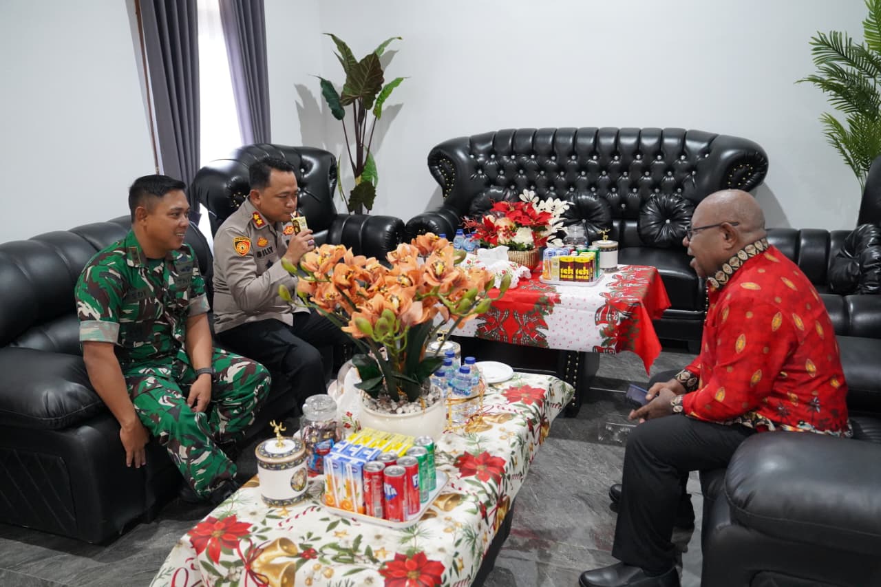 Wakil Bupati Emanuel Kemong menerima Kapolres Mimika AKBP Billyandha Hildiario dan Dandin 1710 Mimika, Letkol Redi Dwi Yuda