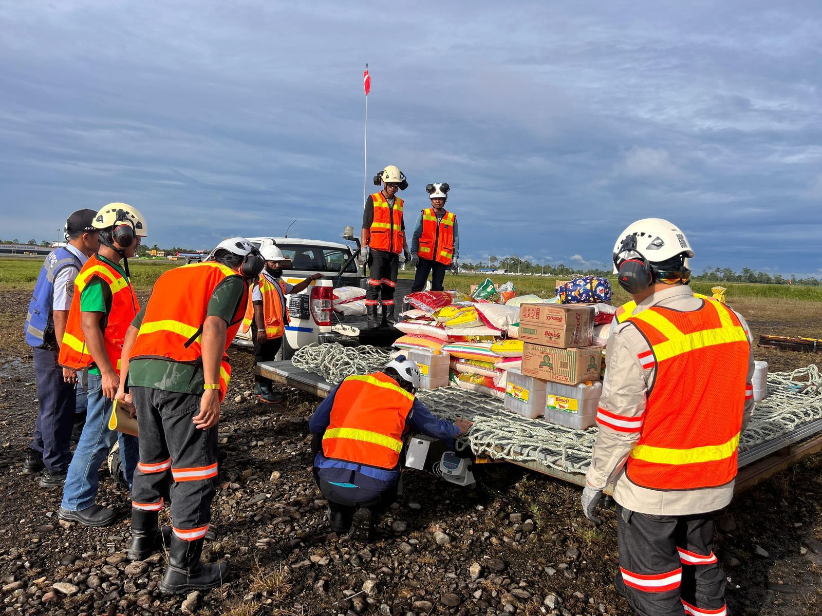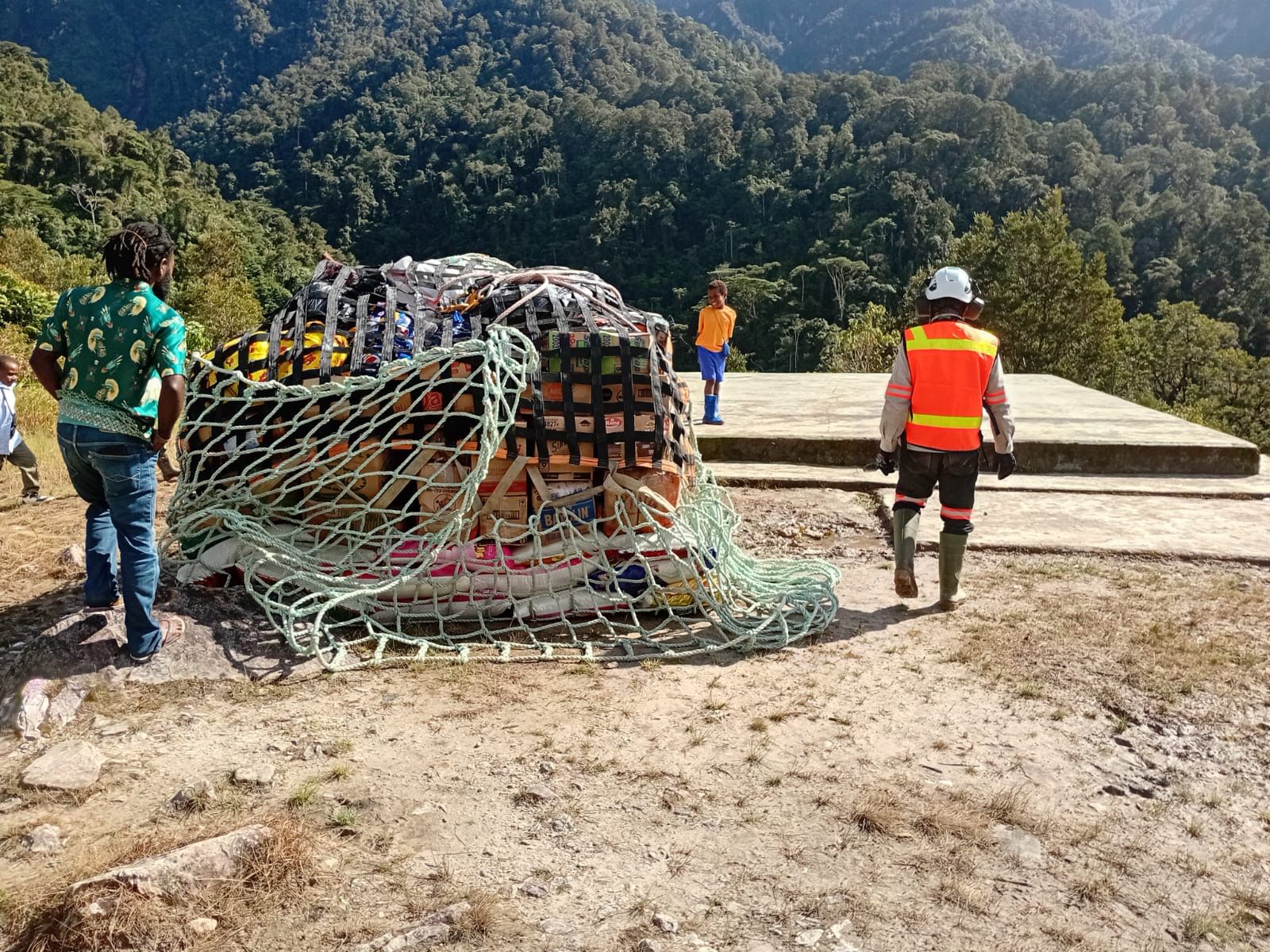 Penerbangan helikopter berlangsung sebanyak 35 kali pada 7–23 Desember 2025 dengan keberangkatan dari Bandara Mozes Kilangin Timika menuju Lembah Aroanop (titik penurunan barang di Kampung Ainggogin dan Kampung Jagamin), Lembah Tsinga (titik penurunan barang di Kampung Beanekogom dan Kampung Dolinigogin), dan di Lembah Jila (titik penurunan barang di Kampung Pasir Putih).