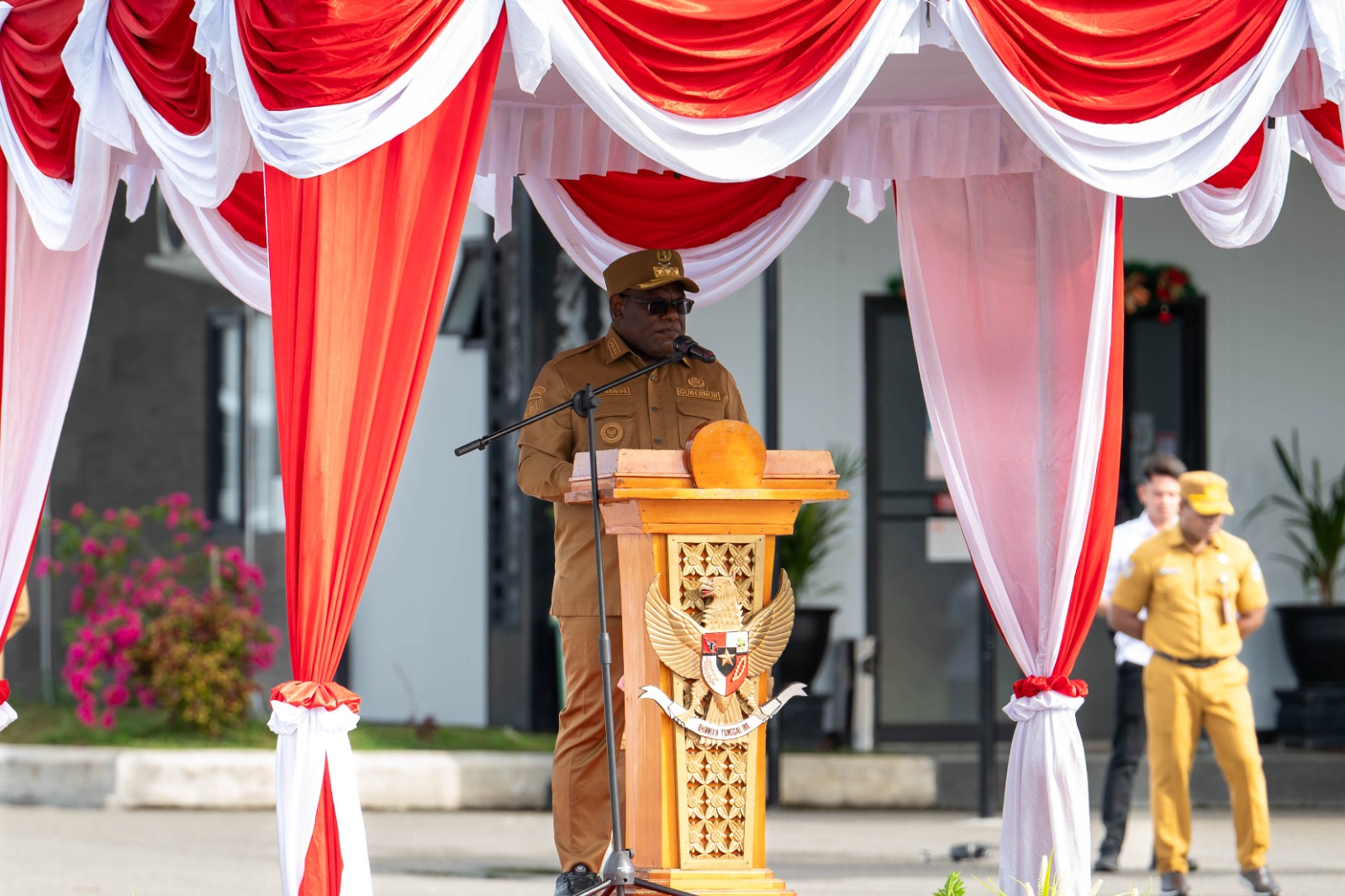 “Pola kerja birokrasi yang berbelit-belit segera ditinggalkan. Gantikan dengan sistem pelayanan yang cepat, transparan dan akuntabel, termasuk melalui pemanfaatan teknologi informasi,” tegas Gubernur Papua Tengah, Meki Nawipa ketika memimpin Apel Gabungan ASN (Aparatur Sipil Negara) di lingkungan Pemerintah Provinsi Papua Tengah di Halaman Kantor Gubernur Papua Tengah, di kawasan Bandara Lama Nabire, Senin (5/1/2026).