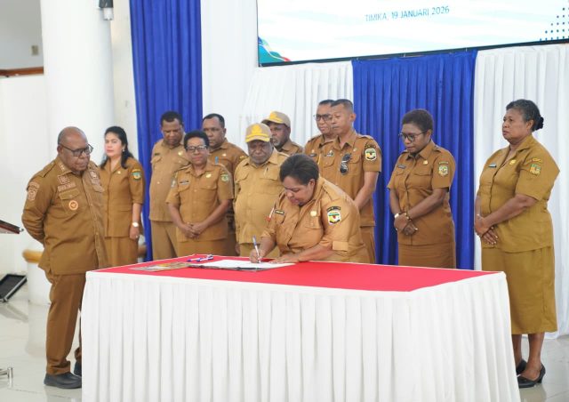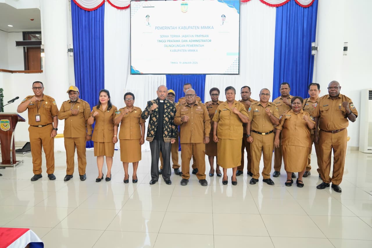Pelantikan pada Kamis (15/1/2026) itu dilakukan oleh Bupati Rettob dan serah terima jabatan pada Senin (19/1/2026) dilakukan dan disaksikan oleh Wakil Bupati, Emanuel Kemong di Loby Utama Kantor Pusat Pemerintah SP3 Timika.