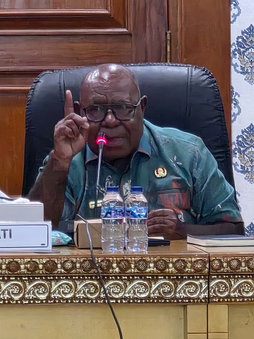 Wakil Bupati Mimika Emanuel Kemong menjelaskan secara umum konflik yang terjadi di Kwamki Narama dari masa ke masa kepada Gubernur Papua Tengah Meki Nawipa dan Wakil Gubernur Deinas Geley.