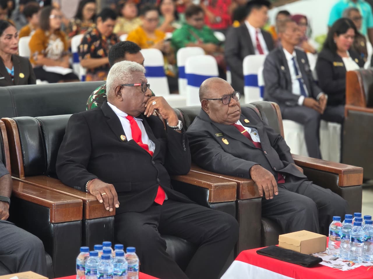 Penandatangan SK Pelantikan yang disaksikan oleh Bupati Mimika, Johannes Rettob dan Wakilnya, Emanuel Kemong.