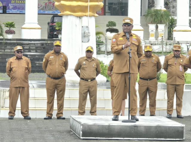Hal ini ditegaskan Bupati Mimika, Johannes Rettob pada apel gabungan di Halaman Kantor Pusat Pemerintahan (Puspem) SP 3, pada Senin (8/2/2026).