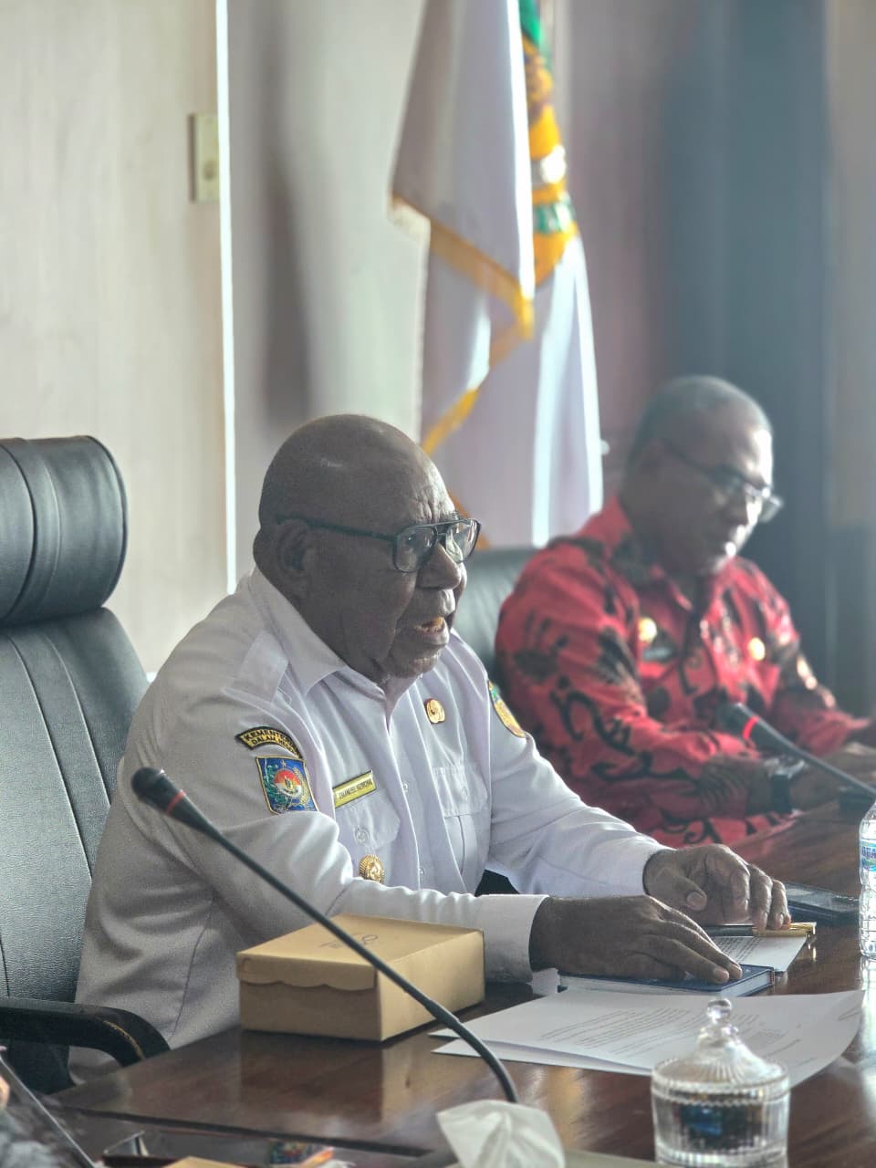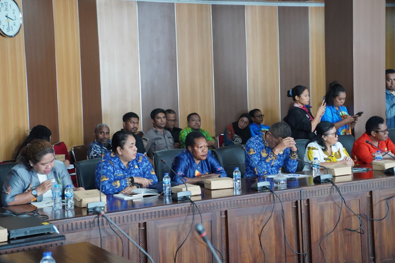 Rapat dipimpin oleh Wakil Bupati Mimika Emanuel Kemong dan didampingi Asisten Bidang Pemerintahan dan Kesejahteraan Rakyat (Kesra), Drs. Ananias Faot, M.Si serta Asisten Bidang Perekonomian dan Keuangan, Santi Sondang, S.IP, M.Si.