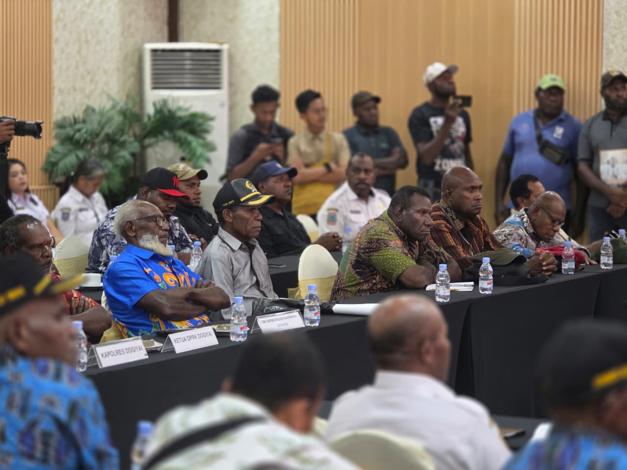 Rapat yang dibuka dan dipimpin oleh Staf Ahli Gubernur Papua Tengah, Marthen Ukago, SE, M.Si, ini bertujuan untuk menyatukan langkah dan menyusun strategi pendekatan yang tepat kepada masyarakat Kapiraya, baik suku Mee maupun Kamoro.