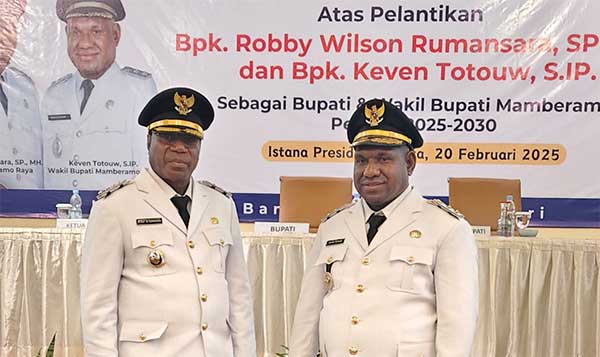 Bupati Mamberamo Raya, Robby Wilson Rumansara dan wakilnya, Kevin Totouw.