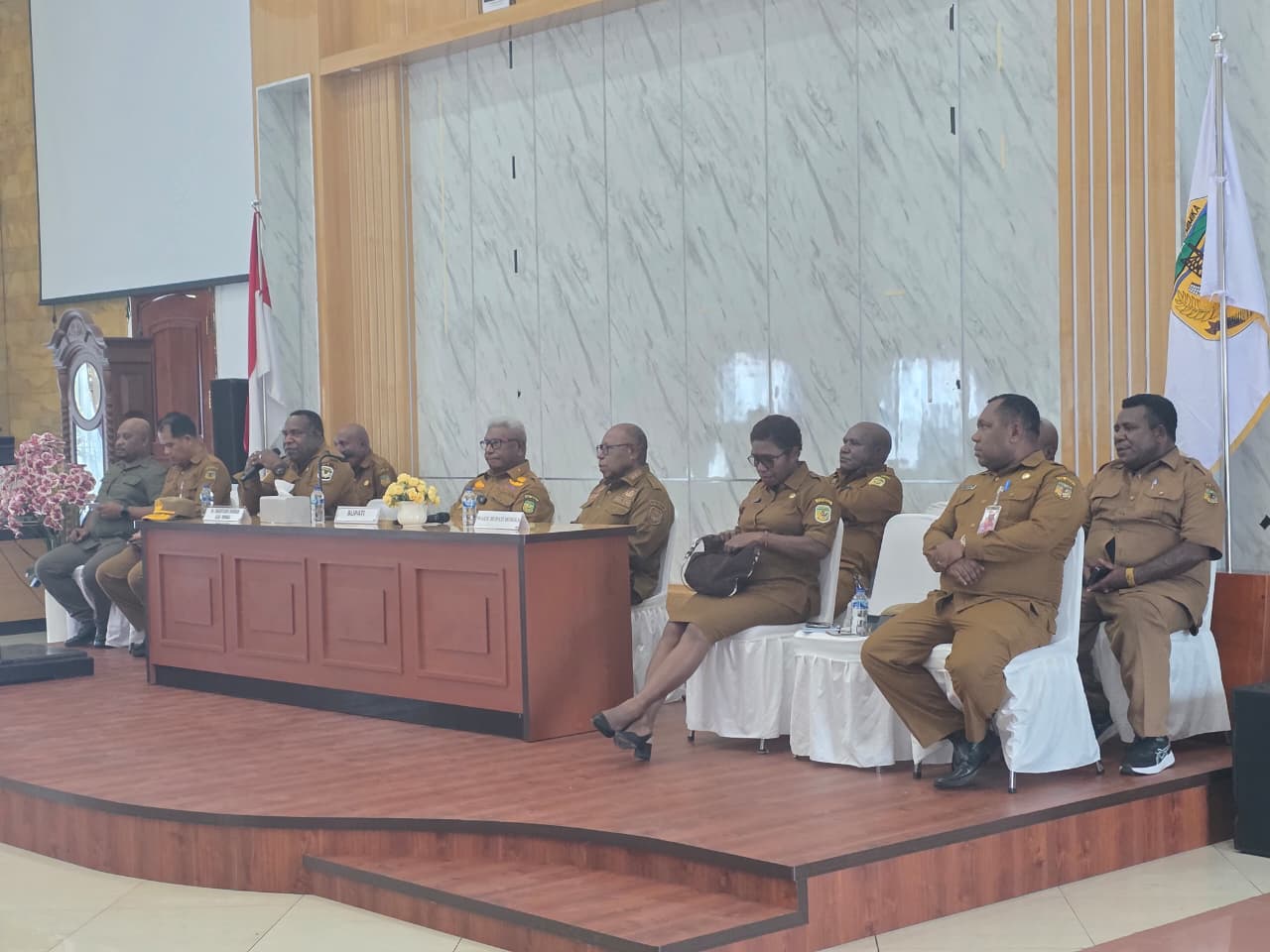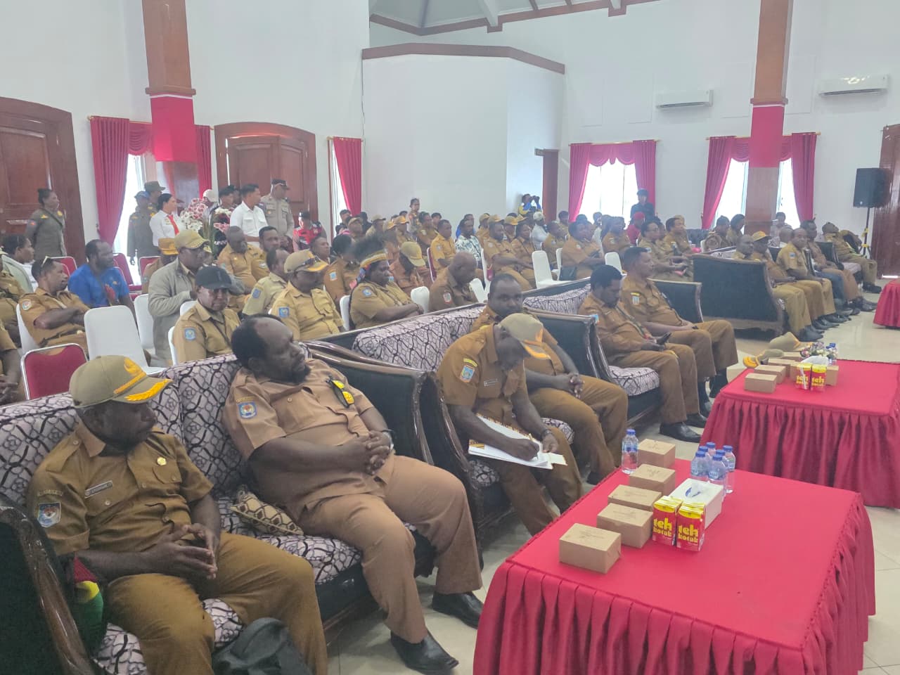 “Mari kita berdiskusi dengan baik dari hati ke hati. Kami punya hati untuk kamu, kami tidak pernah punya hati untuk orang lain. Kami berjuang, kenapa sampai kita terjebak dalam situasi ini? Karena kita terjebak dalam pengangkatan-pengangkatan pejabat masa lalu, sehingga sekarang kami terjebak,” ujar Bupati Johannes Rettob di hadapan para ASN.