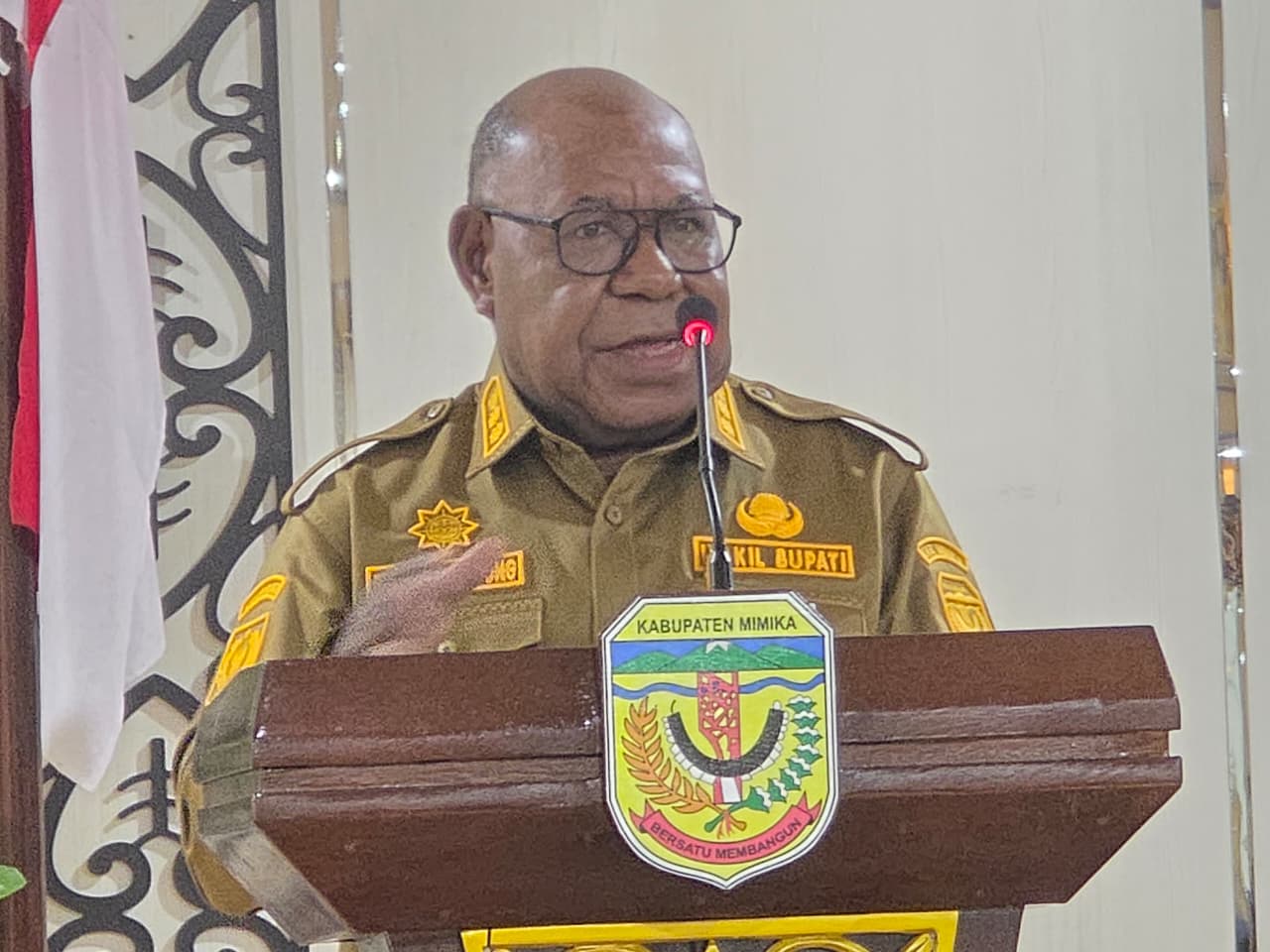 Wakil Bupati Mimika, Emanuel Kemong saat memberikan arahan pada acara Serah Terima jabatan. (Foto: Tim Multi Media Wakil Bupati)