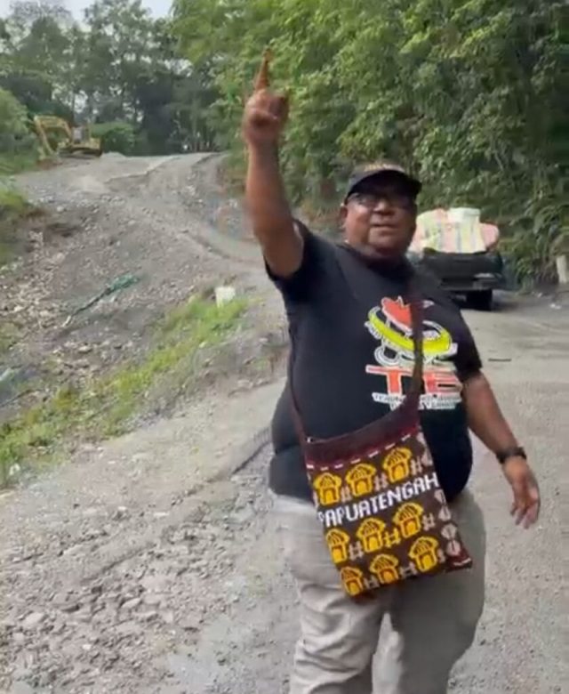“Kasih jalan buat air, supaya jangan air merusak jalannya manusia,” ujar John Gobai menekankan pentingnya pengelolaan aliran air. Ia menjelaskan bahwa pada titik KM 139-141, jalan tersebut cenderung rendah. Meskipun sudah diaspal, kerusakan tetap terjadi karena air tidak memiliki jalur yang tepat untuk mengalir.