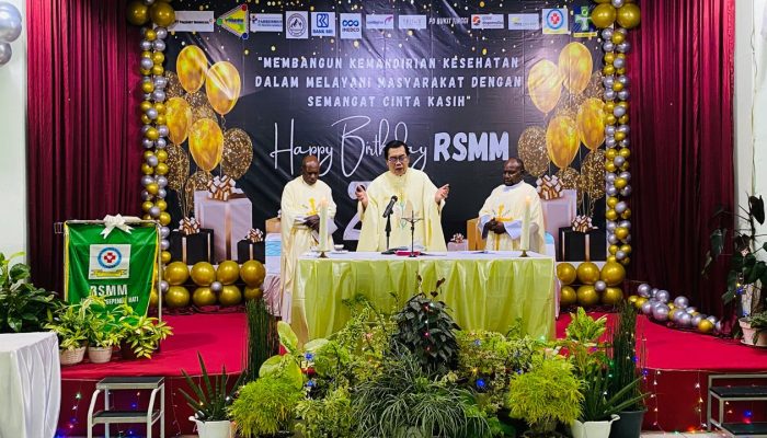 Pastor Andreas Madya Sriyanto SCJ dan Pastor Yoseph Ikikitaro Pr, saat memimpin ibadah syukur HUT ke 25 RSMM.