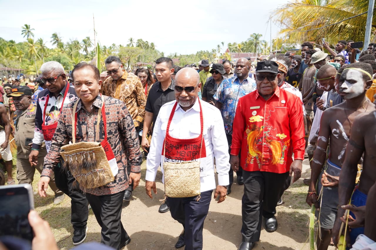 Menteri Koperasi, Ferry Juliantono bersama Wakil Gubernur Papua Tengah, Deinas Geley didampingi Bupati Mimika, Johanes Rettob dan Wakil Bupati, Emanuel Kemong saat tiba di Kampung Atuka, Distrik Mimika Tengah pada Kamis (9/4/2026) – foto: tim multi media wakil bupati mimika