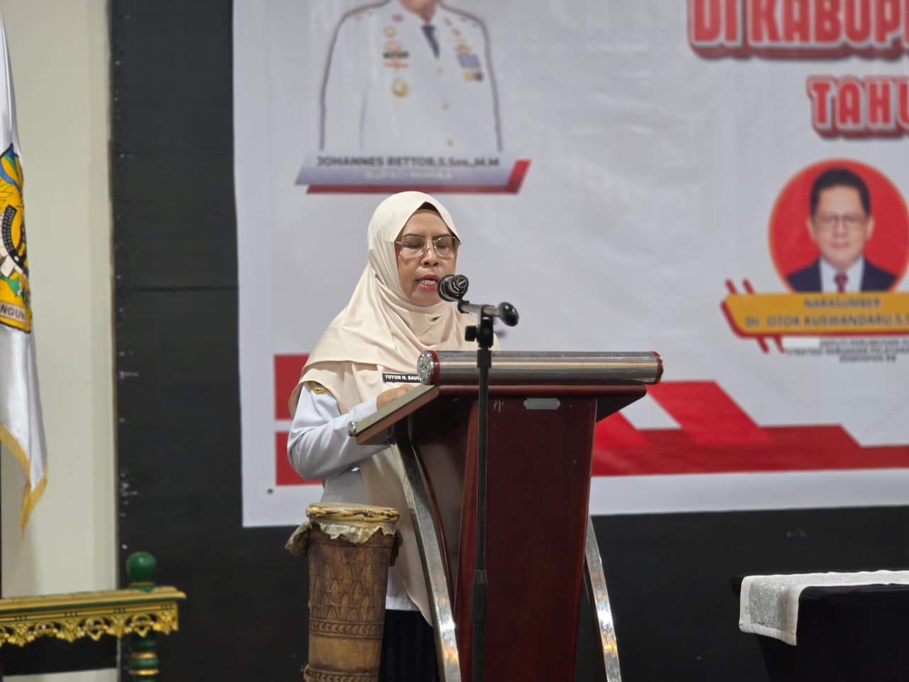 Ketua Panitia, Yuyun N Bauw memberikan laporan kegiatan (Foto: Tim Multi Media Wakil Bupati Mimika)