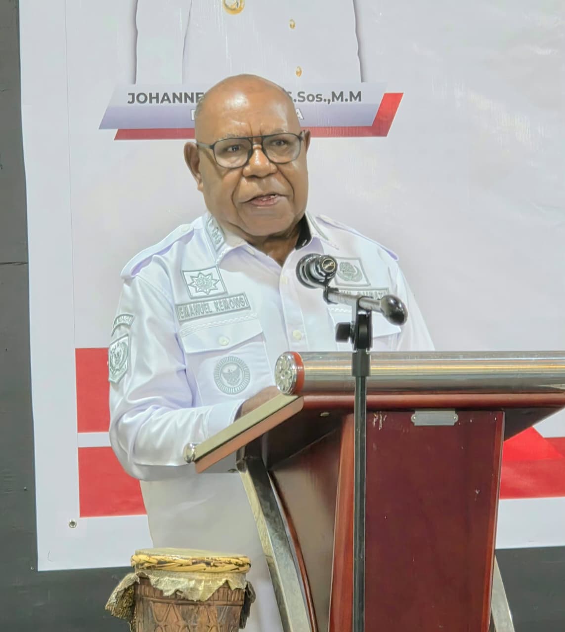Wakil Bupati Mimika, Emanuel Kemong saat memberikan sambutan (Foto: Multi Media Wakil Bupati Mimika)