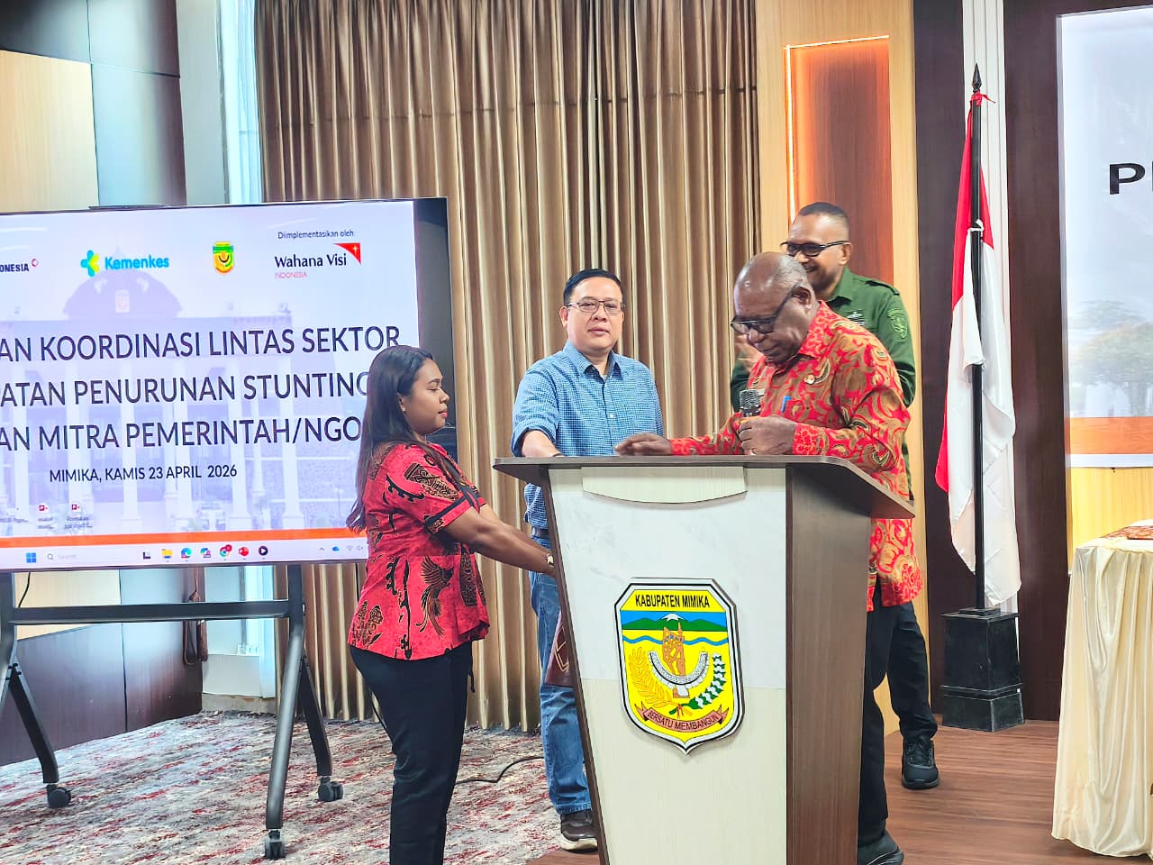 TIMIKA (23/4/26), NGK – Di tengah keindahan alam Papua yang memukau, Pemerintah Kabupaten Mimika tak berdiam diri menghadapi tantangan serius penurunan angka stunting. Faktanya pada Kamis (23/4/2026) di Ballroom Kantor Bappeda Mimika, sebuah Rapat Koordinasi Lintas Sektoral OPD Pengampuh Stunting digelar. Acara ini menjadi wujud nyata komitmen bersama, digerakkan oleh kepedulian mendalam terhadap masa depan generasi penerus di Kabupaten Mimika.