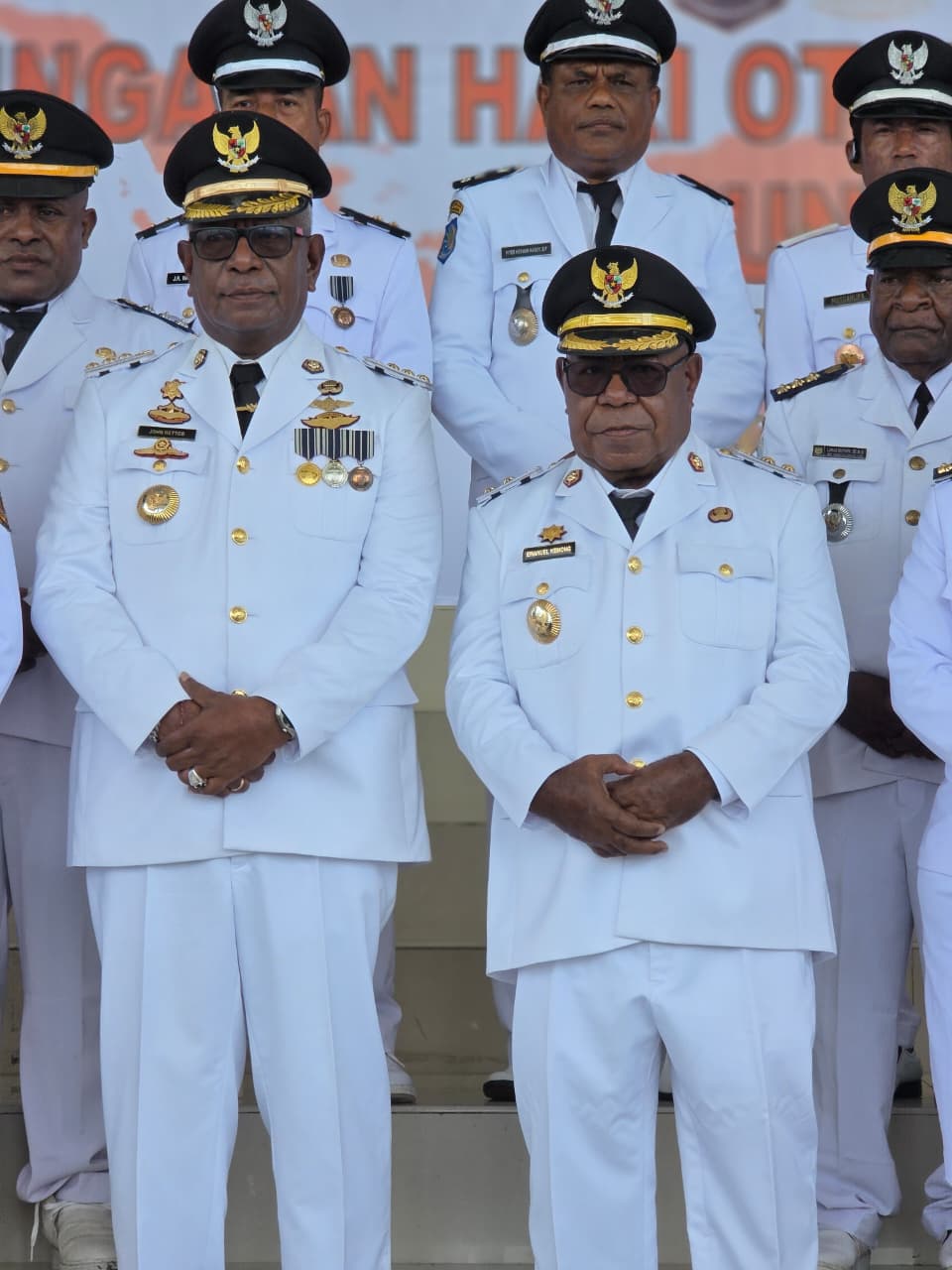Bupati Mimika, Johanes Rettob bersama Wakil Bupati, Emanuel Kemong saat upacara peringatan Hari Otonomi Daerah ke-30 tahun (Foto: Tim Multi Media Wakil Bupati Mimika)