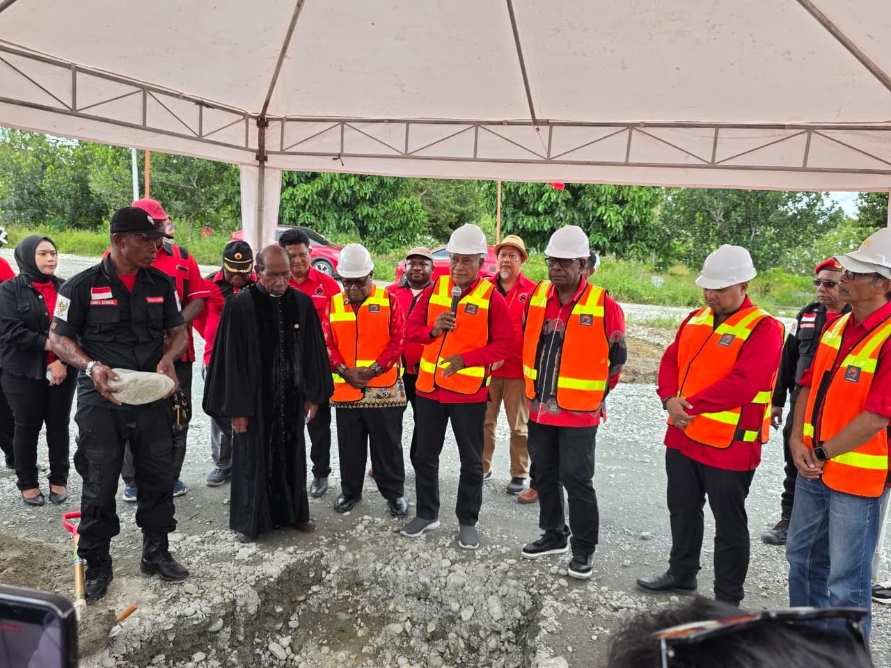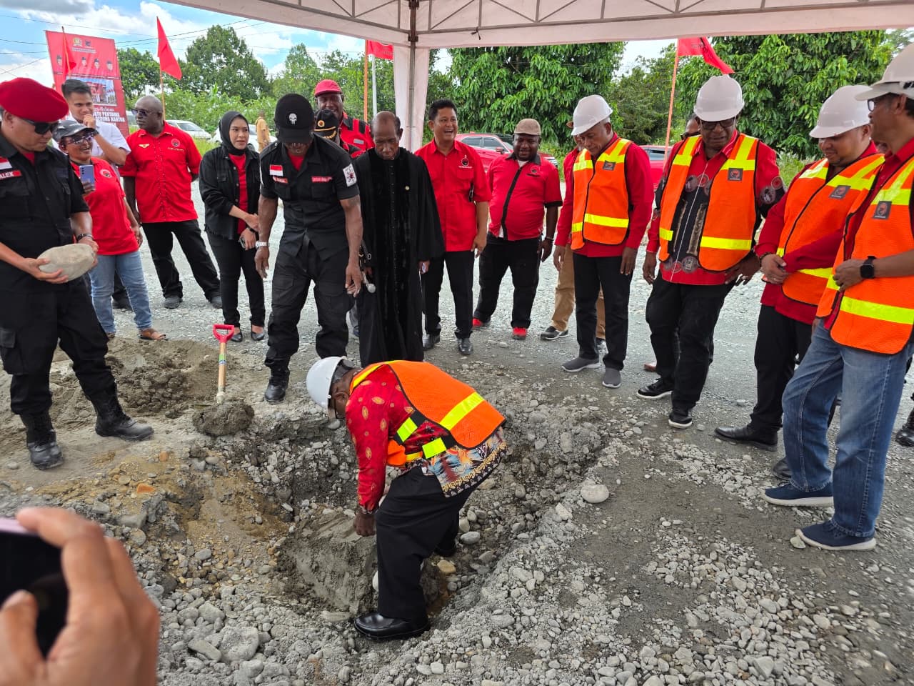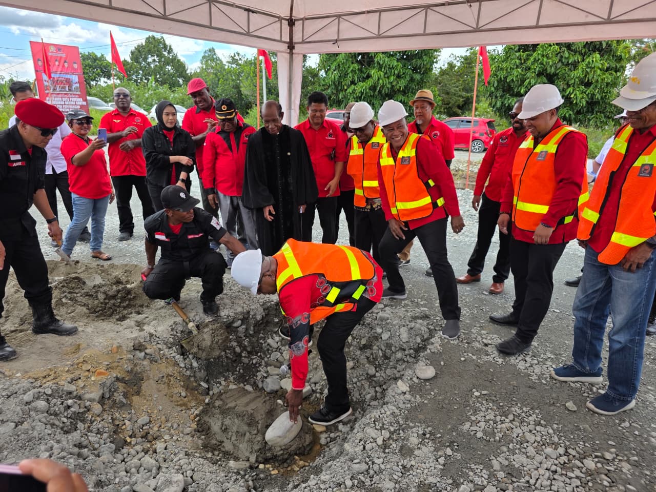 TIMIKA (27/4/26), NGK – Siang itu, Senin 27 April 2026, suasana penuh semangat dan kebersamaan mewarnai acara peletakan batu pertama pembangunan Kantor Dewan Pimpinan Cabang (DPC) Partai Demokrasi Indonesia Perjuangan (PDI-P) Kabupaten Mimika. Di lokasi pembangunan yang terletak di Jalan WR Supratman, Timika, langkah awal ini bukan sekadar ritual seremonial, melainkan simbol tekad bulat untuk memajukan partai dan daerah.