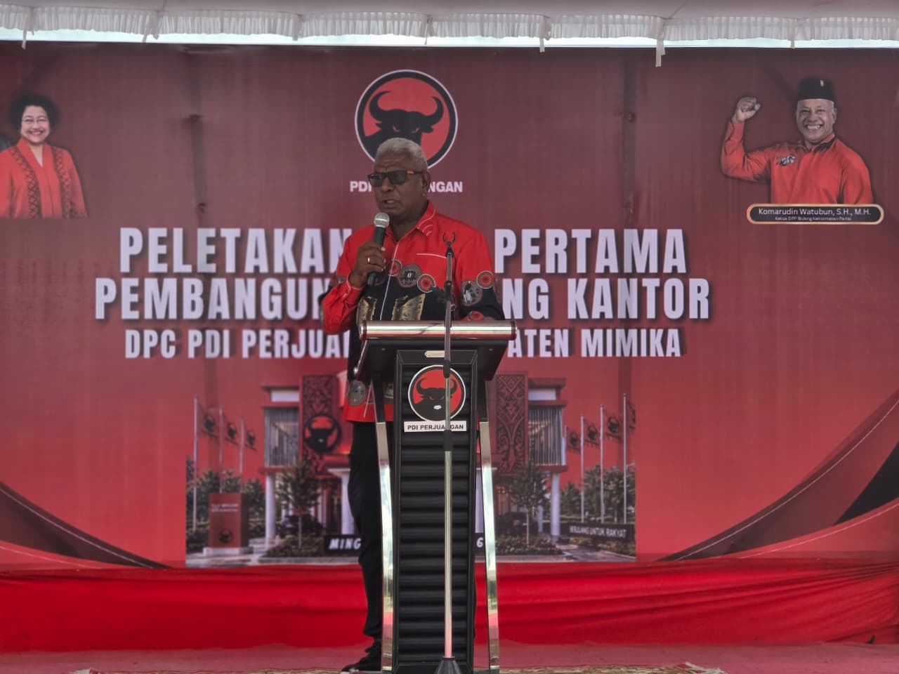 Sang orator dari PDI-P yang terpilih menjadi anggota DPRI dari Provinsi Papua Tengah itu berharap, kantor yang akan berdiri ini bukan sekadar bangunan batu dan semen, melainkan tempat yang strategis. “Tempat ini untuk melahirkan generasi-generasi pemimpin masa depan di Papua, khususnya di Mimika,” ujar Komarudin Watubun.