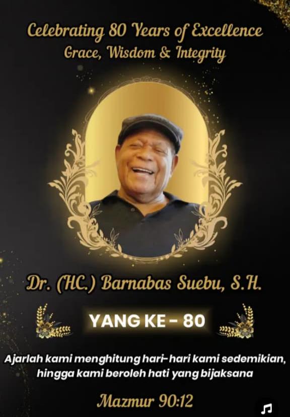 JAYAPURA (29/4/26), NGK – Hari ini, 29 April 2026 menandai sebuah perjalanan panjang yang luar biasa. Sosok yang akrab disapa Kaka Bas, atau lengkapnya Barnabas Suebu, genap menginjak usia ke-80 tahun. Delapan dekade bukan sekadar angka baginya, melainkan bukti nyata bahwa hidup adalah anugerah yang harus diisi dengan karya, pengabdian, dan rasa syukur.