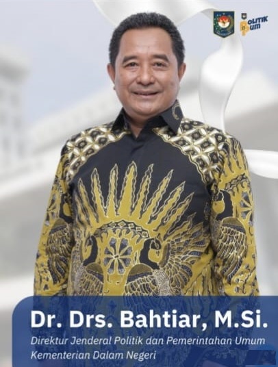Turut hadir dan memberikan materi dalam Rakor ini, Dr. Drs. Bahtias, M.Si, Direktur Politik dan Pemerintahan Umum Kementerian Dalam Negeri.