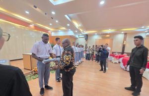 Gubernur Papua Tengah Serahkan Bantuan Laptop Buat Anggota Paskibra Perwakilan Mimika